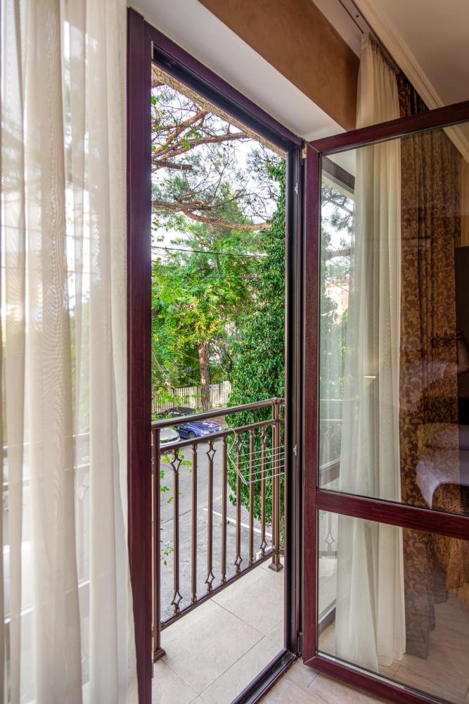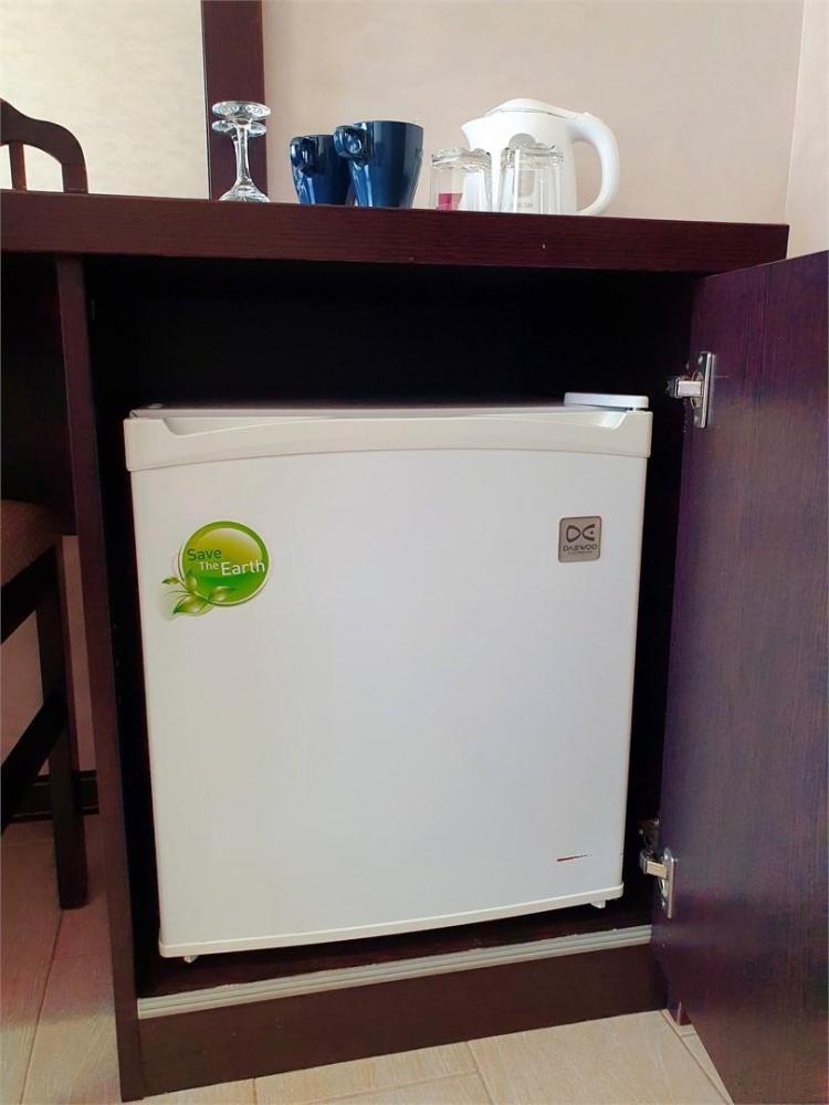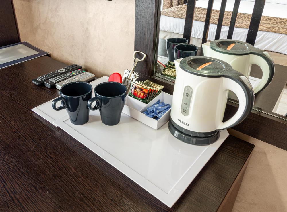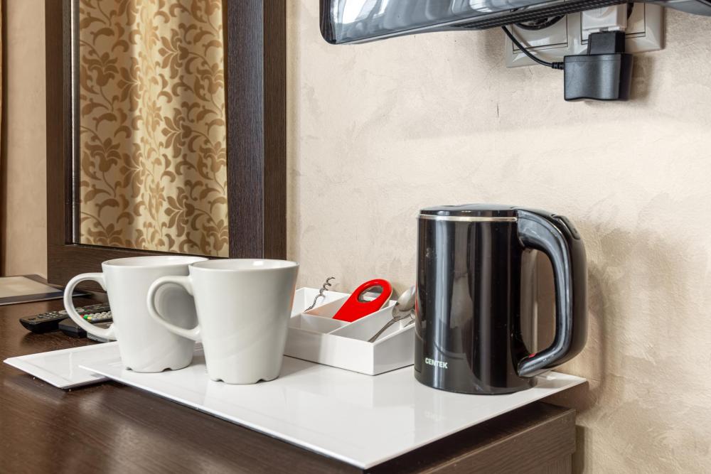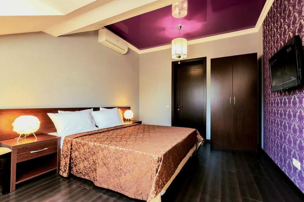 Двухместная комната стандарт с французским балконом. В комнате: двуспальная или две односпальные кровати, комплект мебели, кондиционер, холодильник, чайник, сейф, санузел с душем.