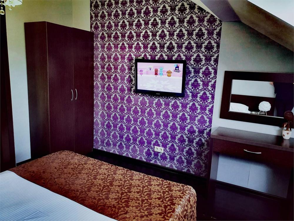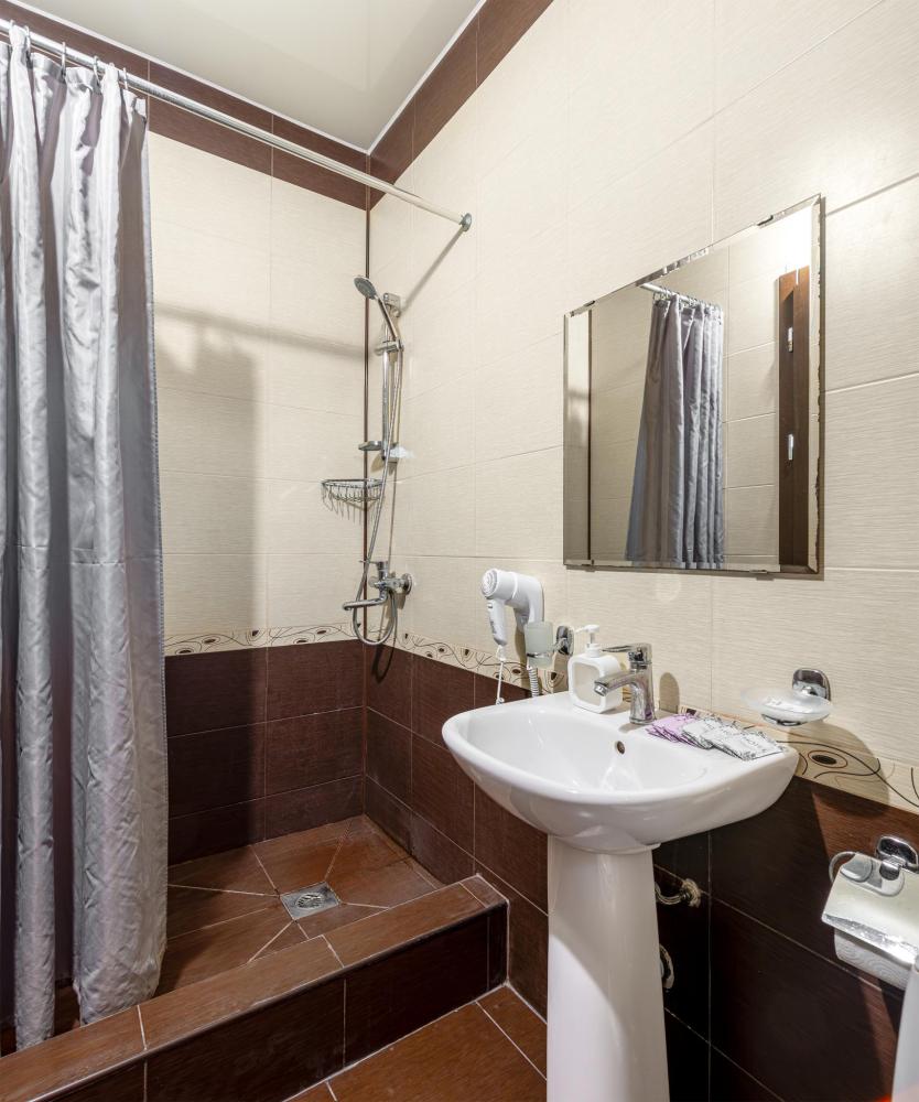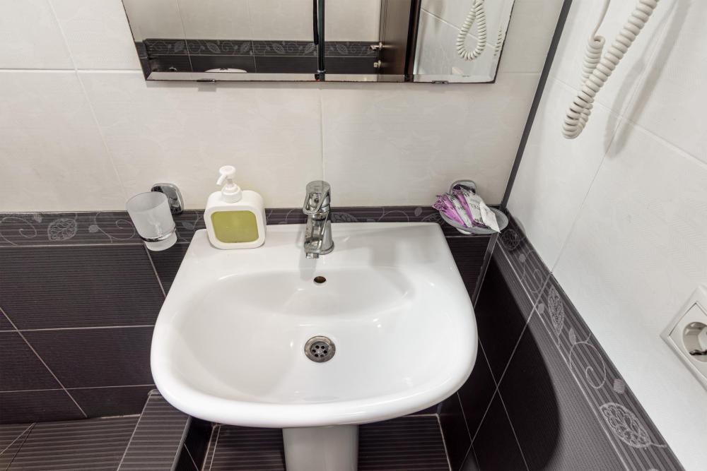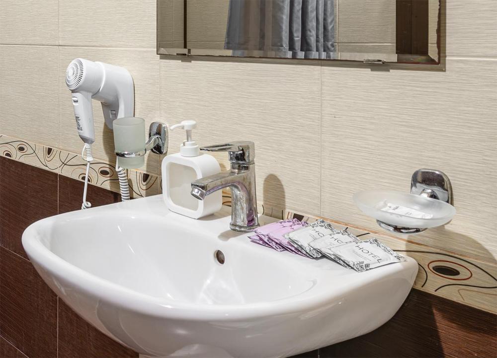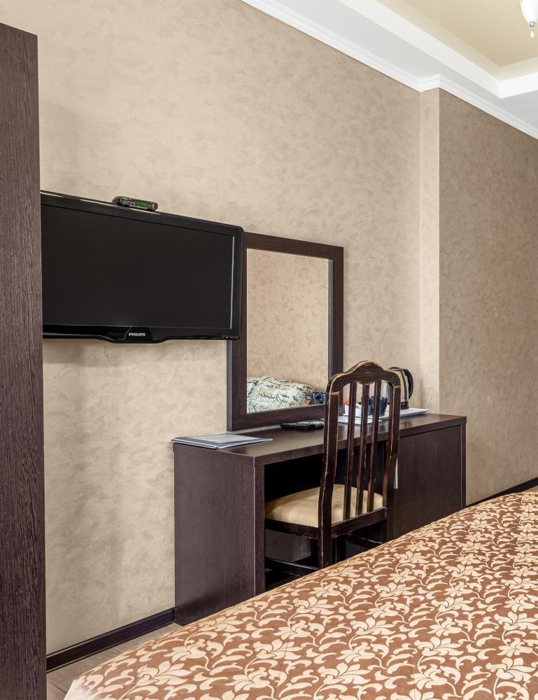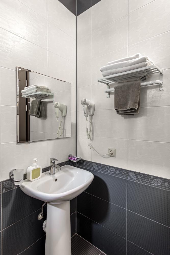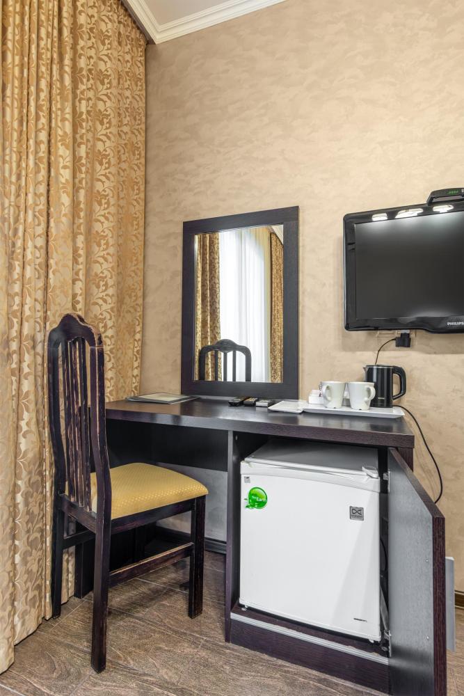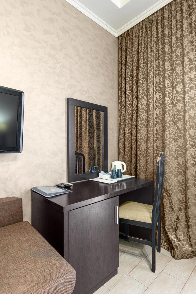 Трехместная комната полулюкс с балконом, оборудованная всем необходимым для комфортного проживания. В комнате: двуспальная и односпальная кровати или три односпальные кровати, комплект мебели, кондиционер, холодильник, чайник, сейф, санузел с душем.