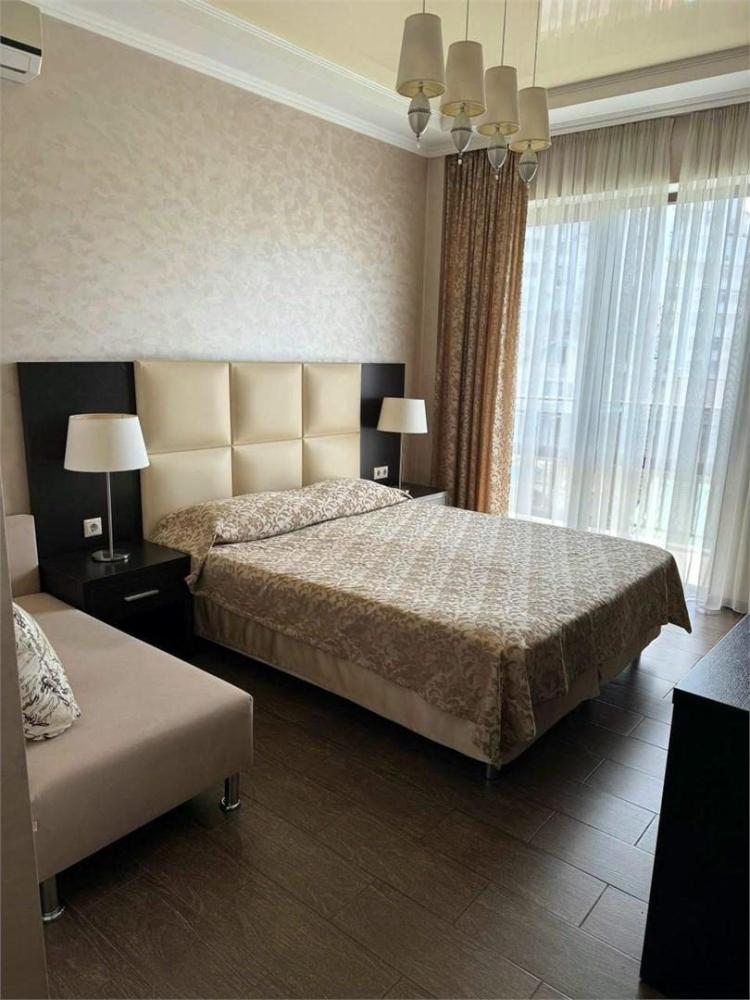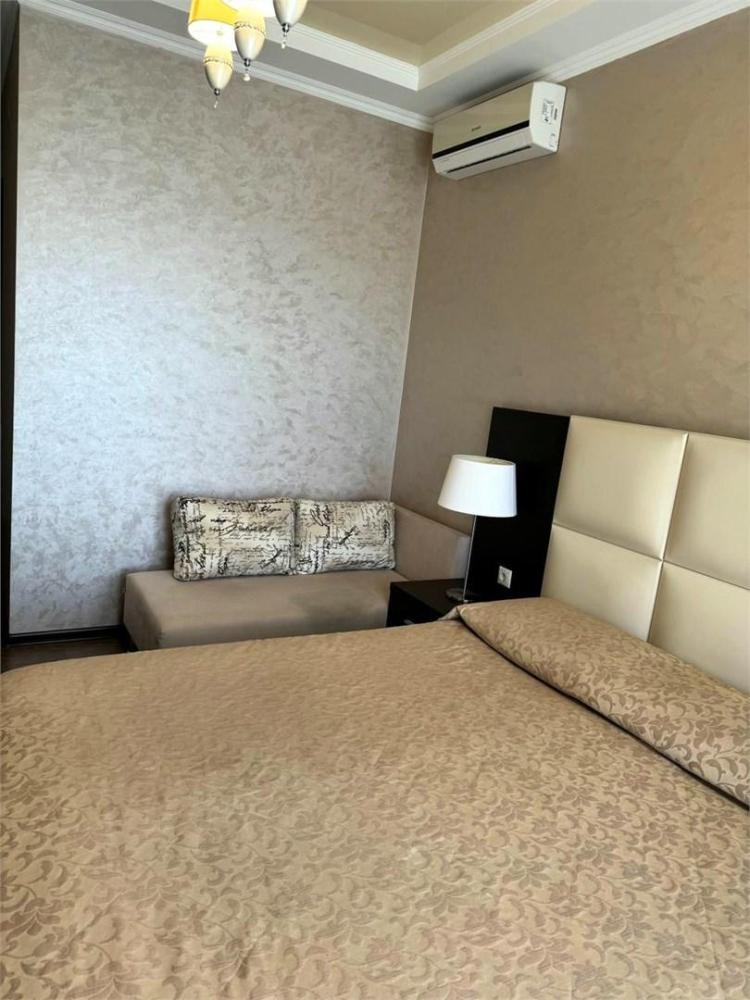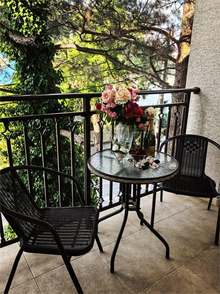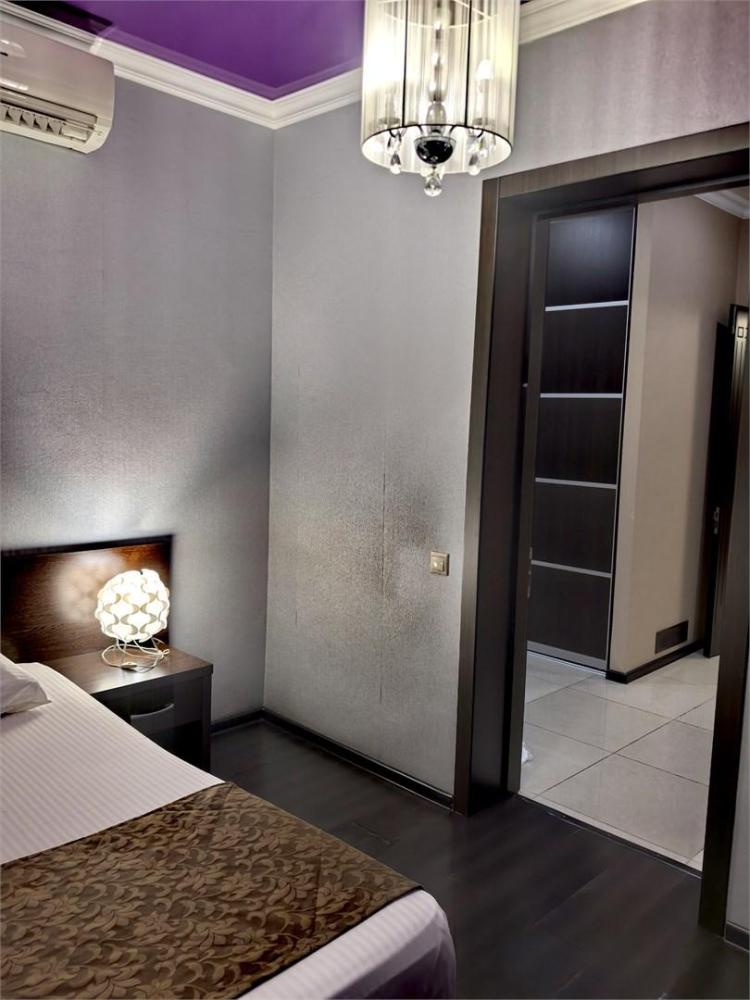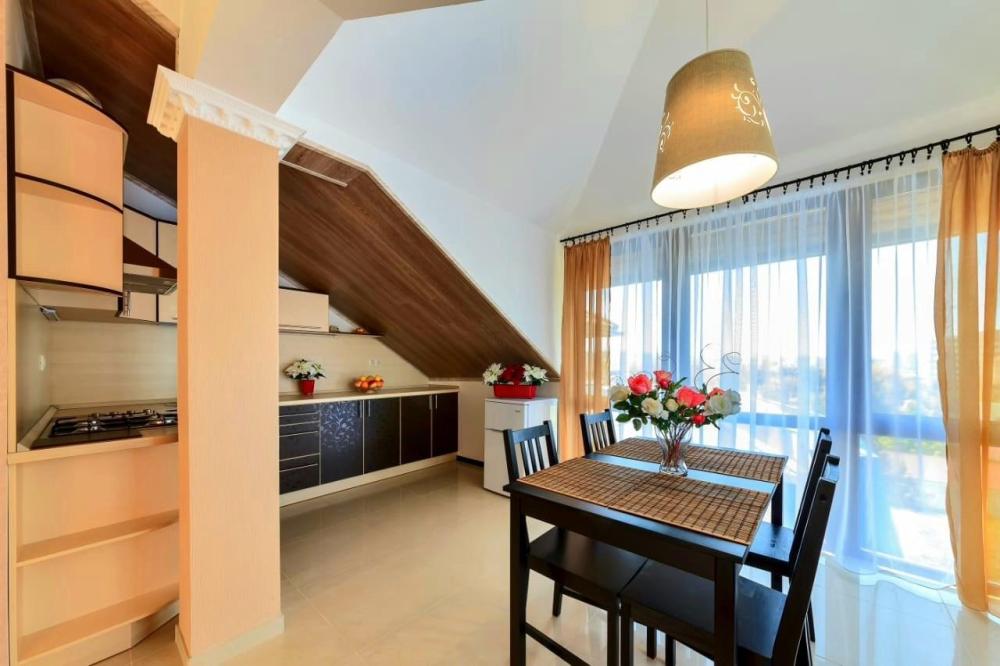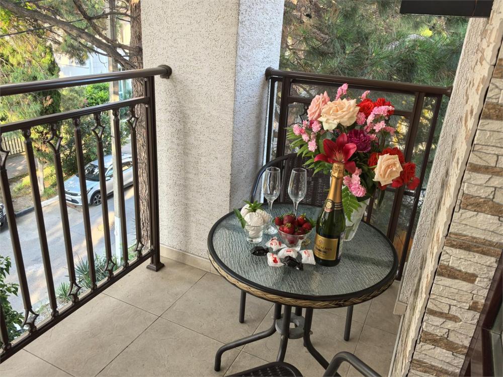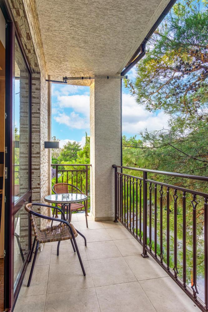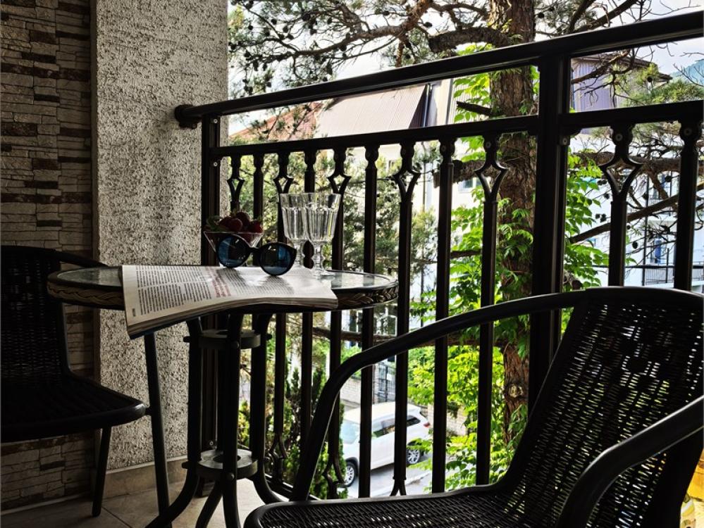 Трехкомнатные апартаменты занимают весь 4 этаж площадью 150 кв. метров. В апартаментах 2 спальни с двуспальными кроватями, 3 кондиционера, 3 телевизора, 2 туалета, душевая кабина, стиральная машина, оснащённая всем необходимым кухня, просторная гостиная с раскладным диваном, балкон и терраса с видом на море и горы.