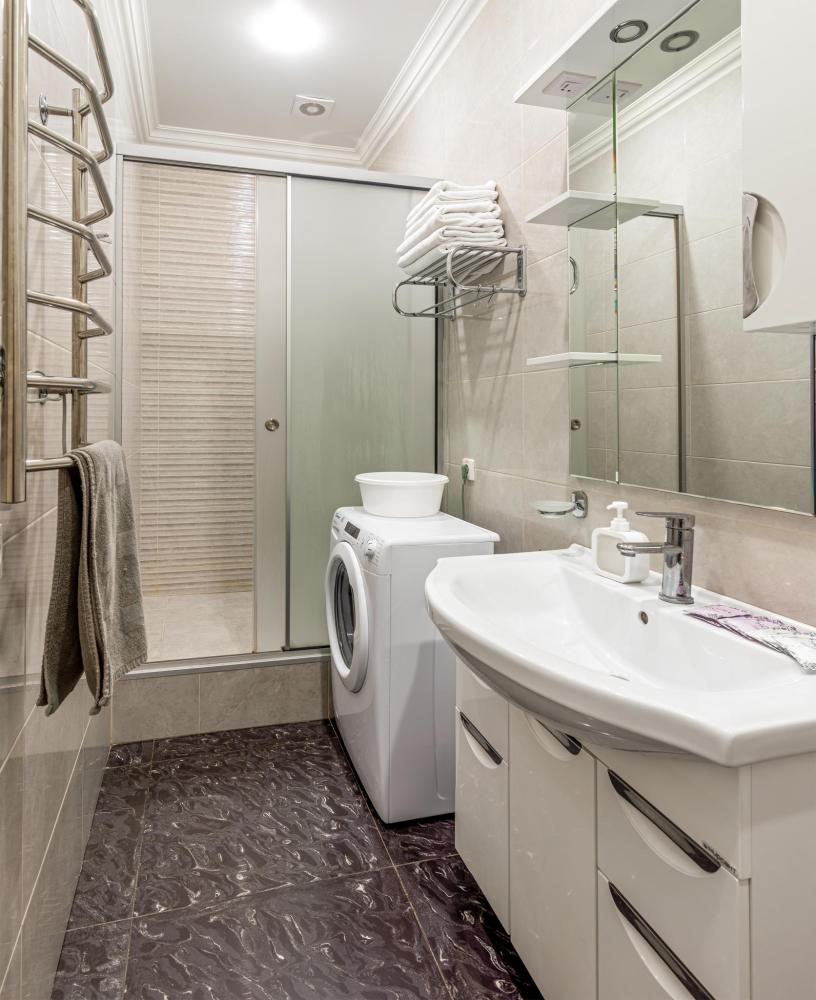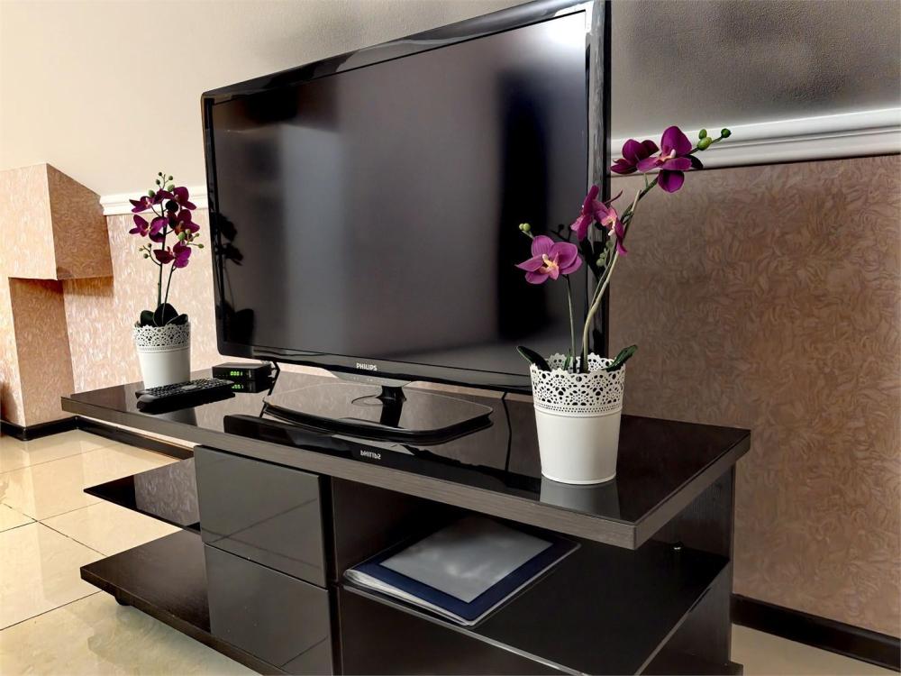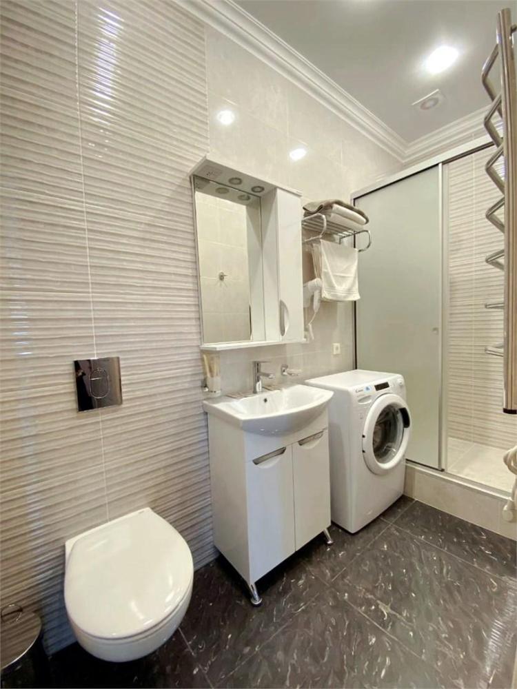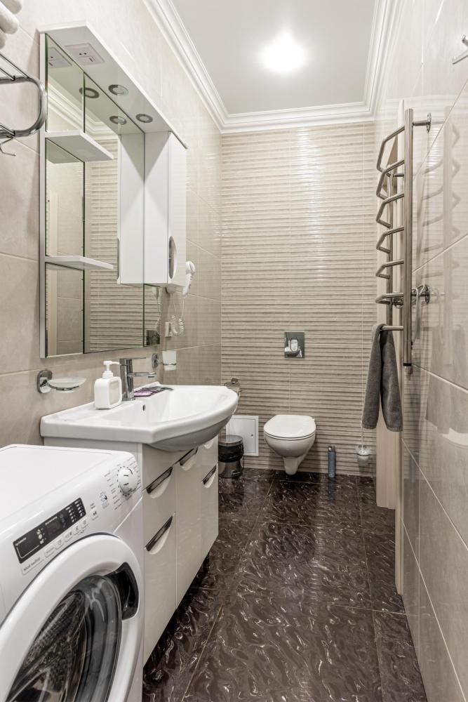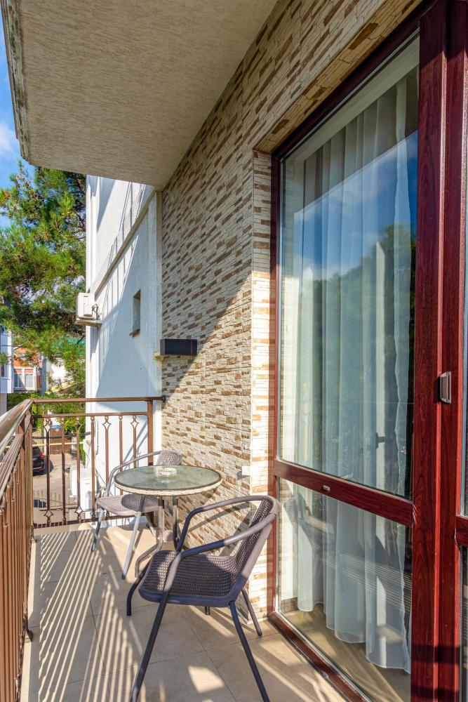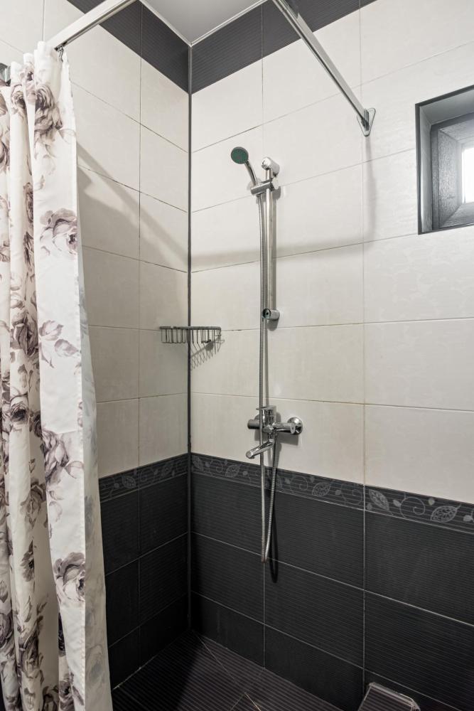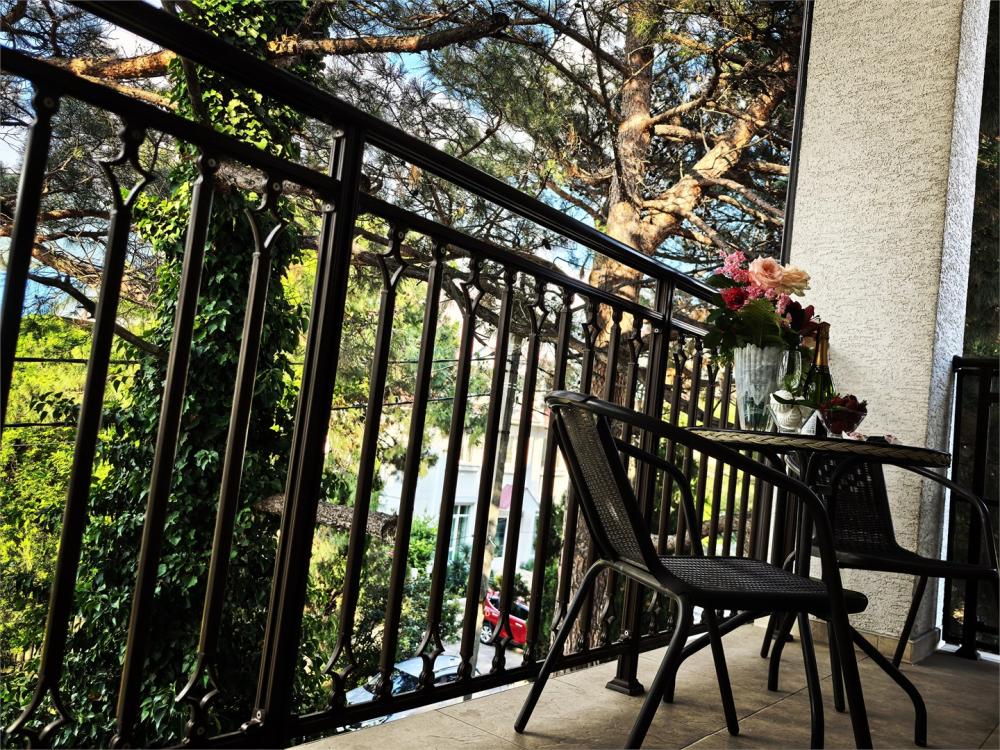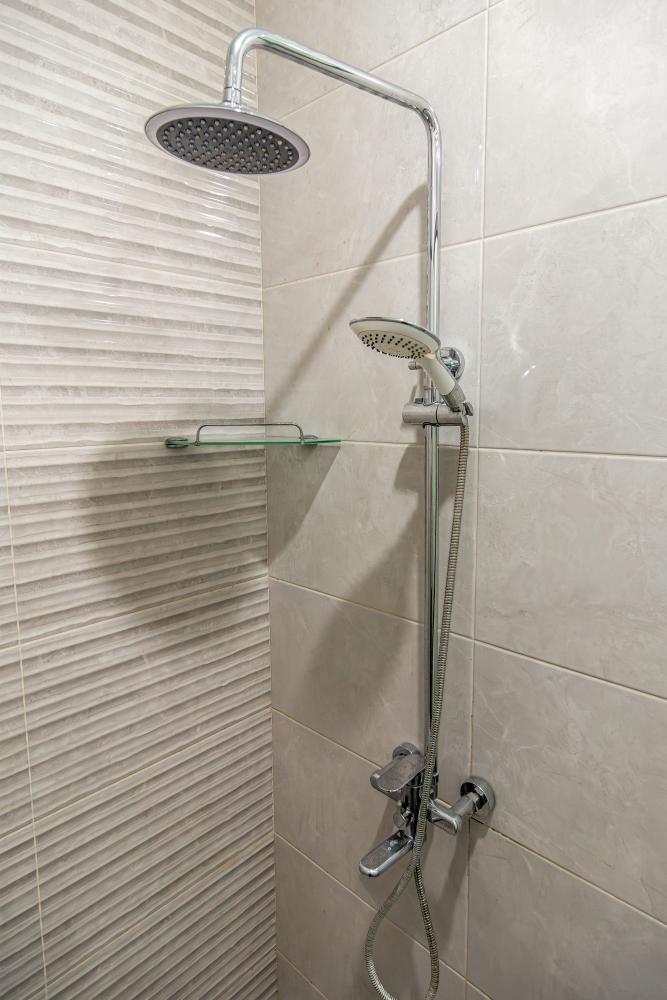 Трехкомнатные апартаменты занимают весь 4 этаж площадью 150 кв. метров. В апартаментах 2 спальни с двуспальными кроватями, 3 кондиционера, 3 телевизора, 2 туалета, душевая кабина, стиральная машина, оснащённая всем необходимым кухня, просторная гостиная с раскладным диваном, балкон и терраса с видом на море и горы.