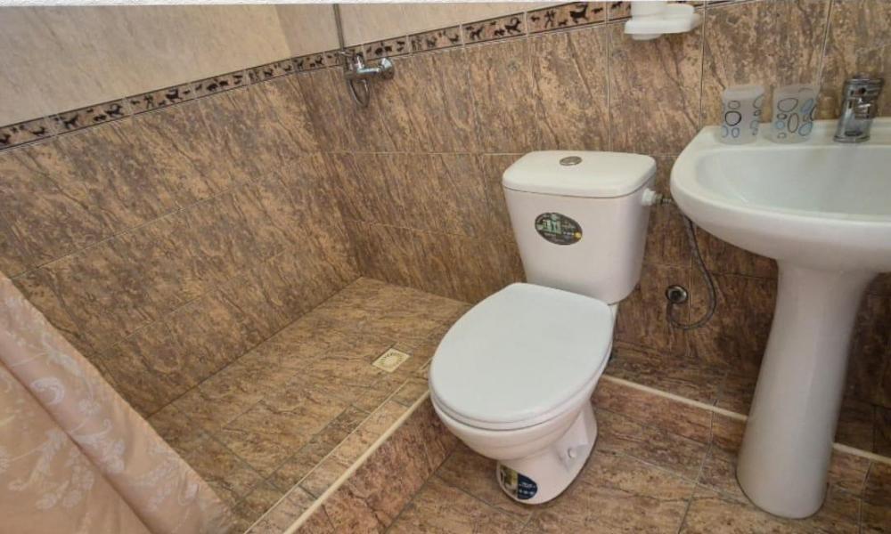Уютная комната, оборудованная всем для комфортного отдыха. В комнате двуспальная кровать и односпальная кровать, плазменный ТВ с цифровыми каналами. Санузел оборудован просторным душем, а современный ремонт гарантирует отсутствие посторонних запахов. Гостям предоставляется хлопковое белье, удобный матрас и подушки. Вход в номер с общего балкона, где у каждой комнаты есть зона чаепития со столом и стульями.