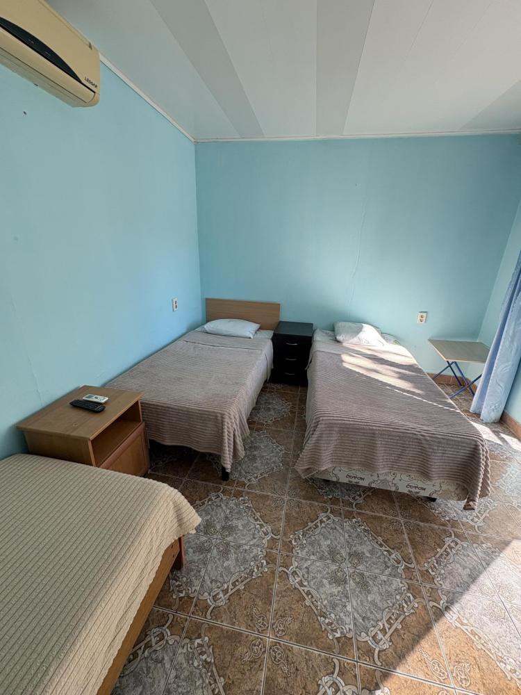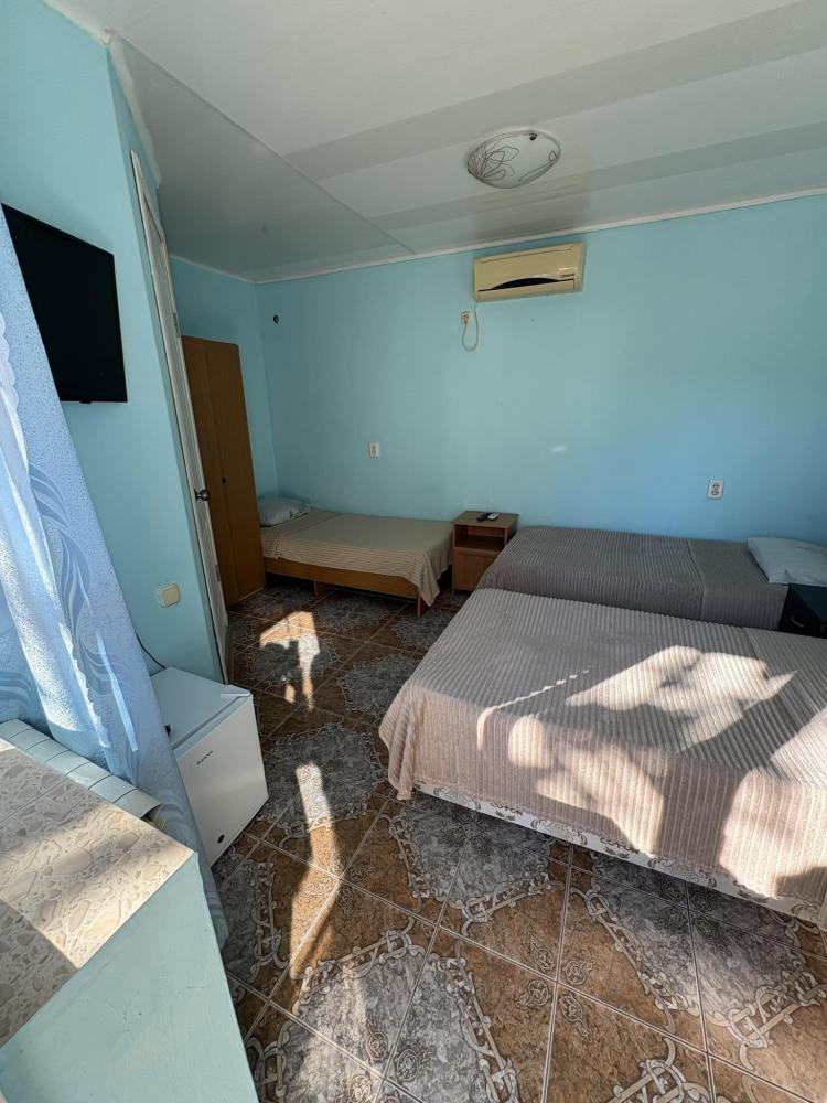 3-х местный номер, оснащённый всем необходимым. В номере один 2-х местный раскладной диван, одна кровать, кондиционер, ТВ, мини холодильник, интернет, свой душ, туалет, принадлежности.