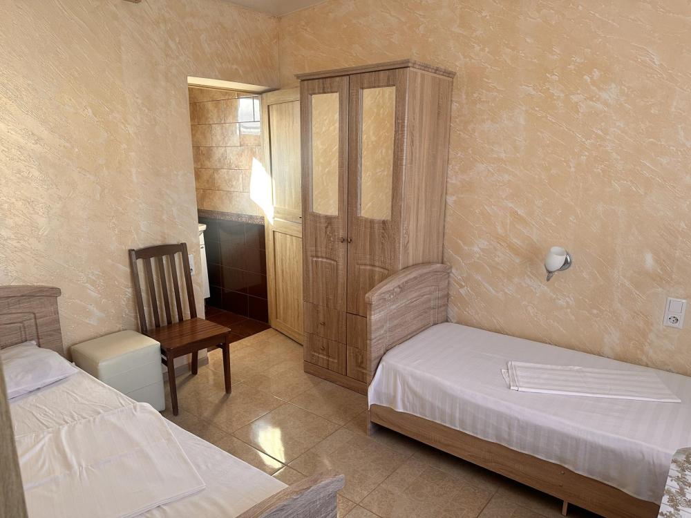 Стандартный номер на 2-3 человека. В номере двуспальная кровать + односпальная. Холодильник, ТВ, Wi-Fi, шкаф и кондиционер. Душ и туалет в номере. Номер находится на втором этаже. Есть все для комфортного проживания, выдаются туалетные принадлежности. Во дворе общая кухня, зона отдыха и приема пищи под крышей, мангал. Есть гладильная доска с утюгом, услуги прачечной.