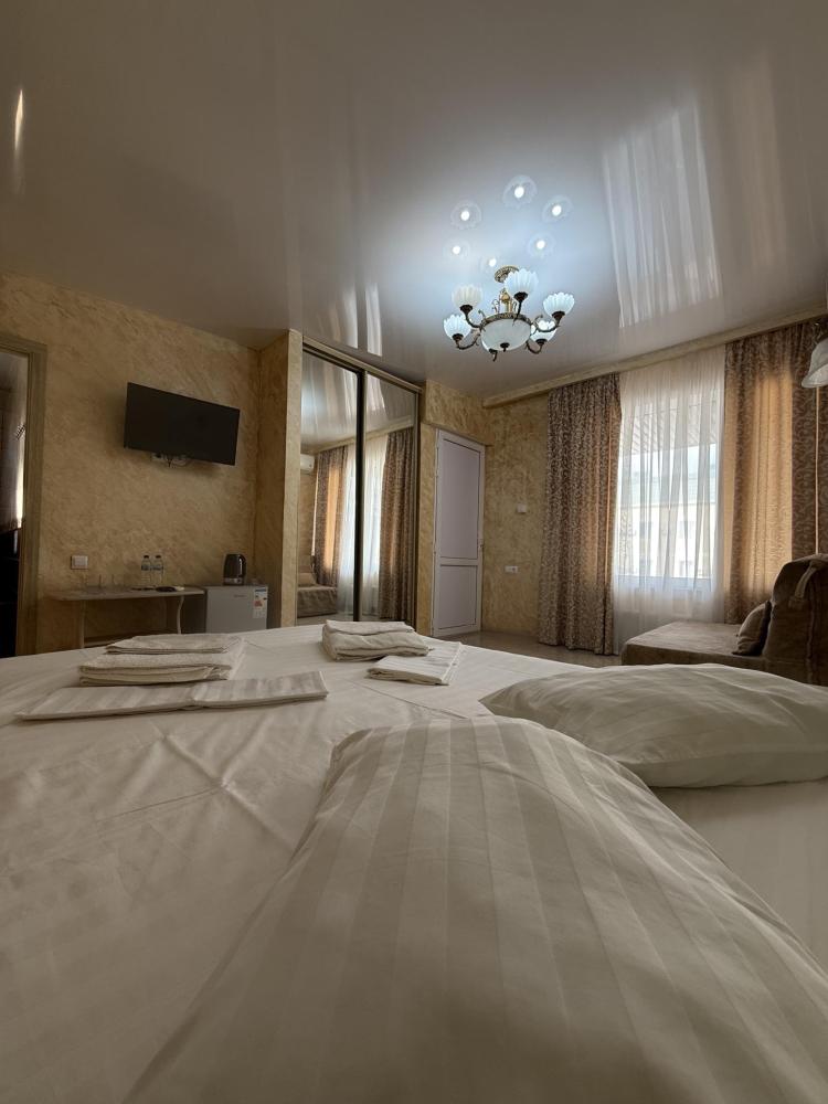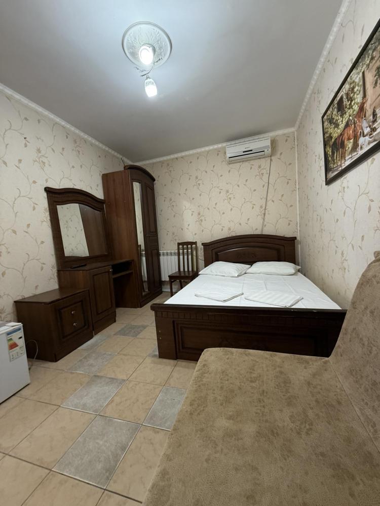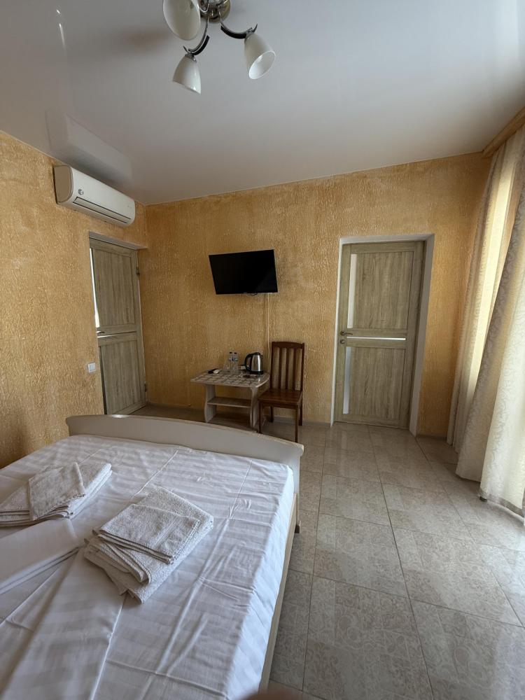 Улучшенный номер на 2-4 человека. В номере двуспальная кровать + двуспальный диван, холодильник, ТВ, Wi-Fi, шкаф и кондиционер. Душ и туалет в номере. Есть все для комфортного проживания, выдаются туалетные принадлежности. Во дворе общая кухня, зона отдыха и приема пищи под крышей, мангал. Есть гладильная доска с утюгом, услуги прачечной.