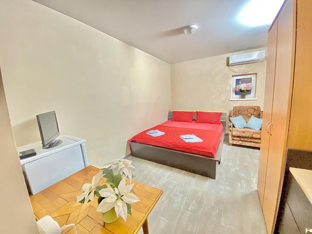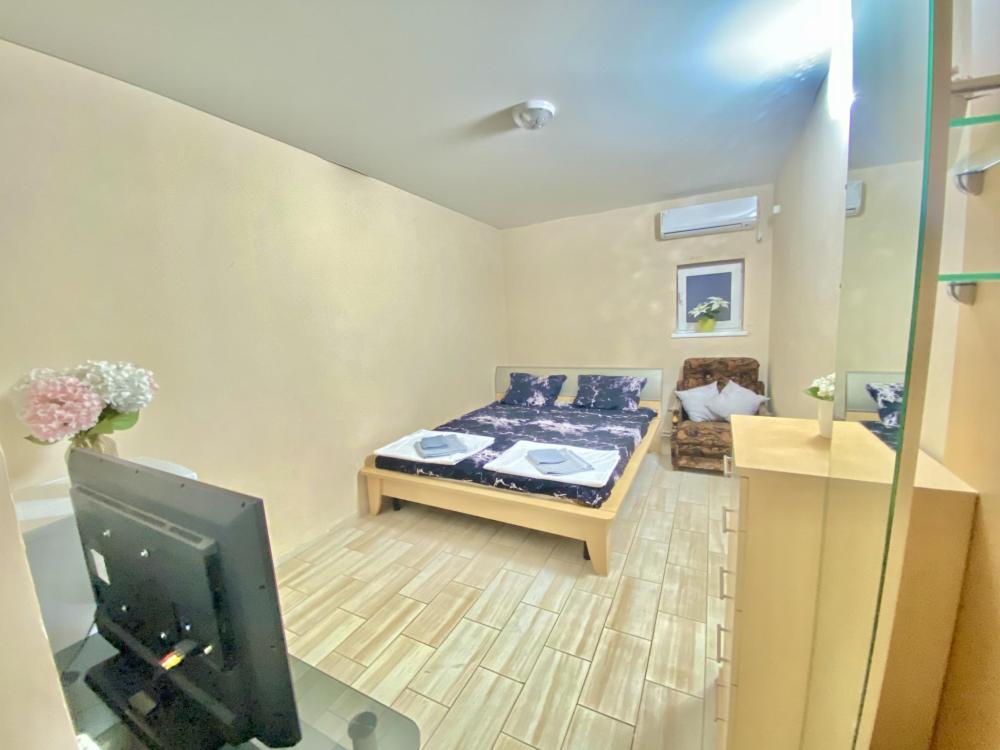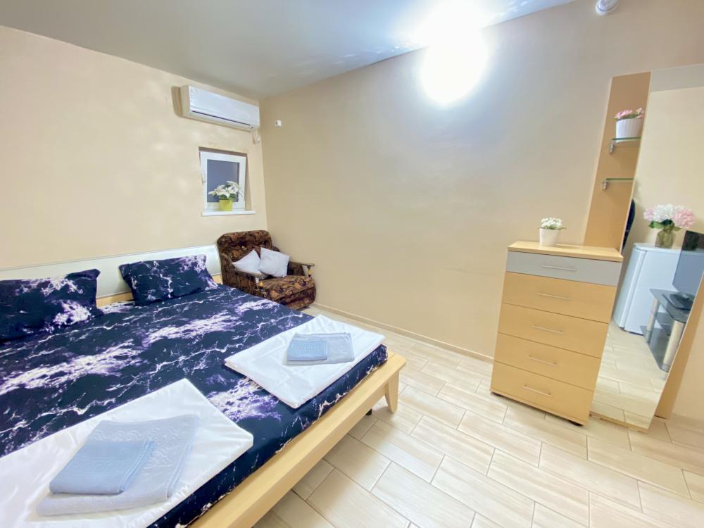 Комната эконом с 1 двуспальной кроватью. В комнате есть все необходимое для комфортного проживания: мебель, двуспальная кровать, телевизор, холодильник, сплит-система. Санузел на этаже. Для приготовления еды можно воспользоваться общей кухней, оборудованной всем необходимым. Предоставляется постельное белье, полотенца, туалетная бумага, жидкое мыло.