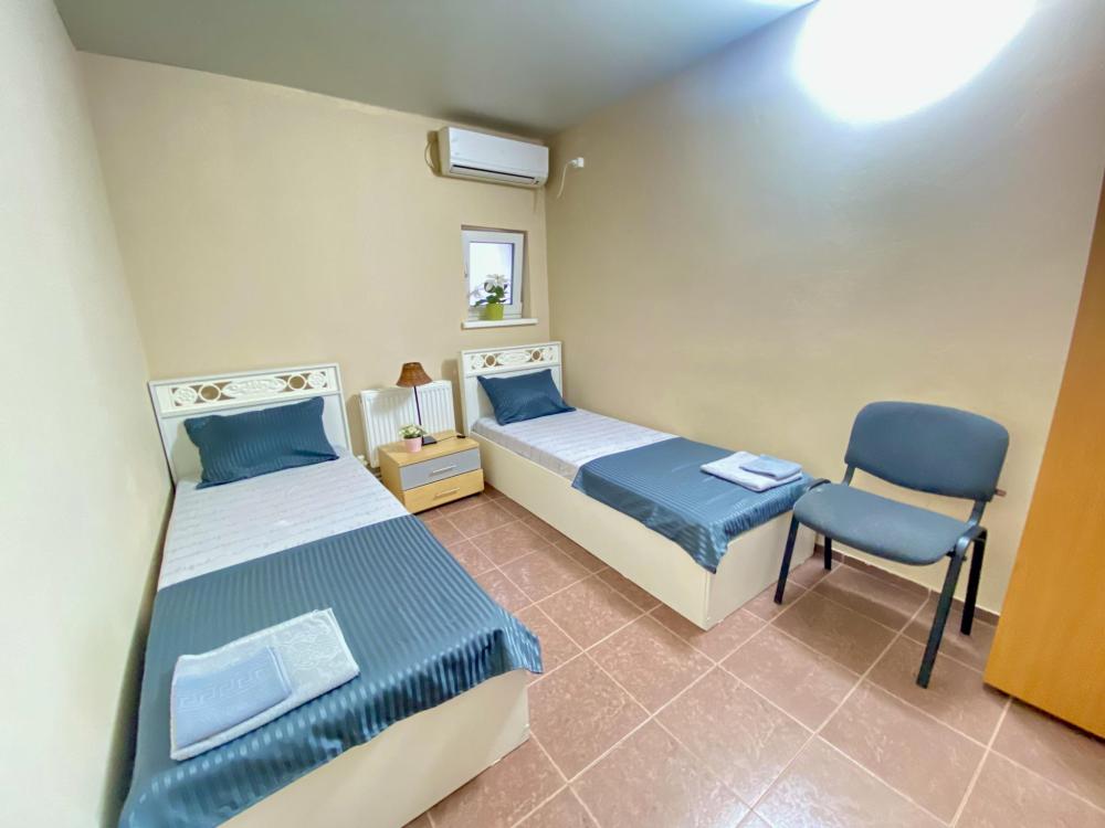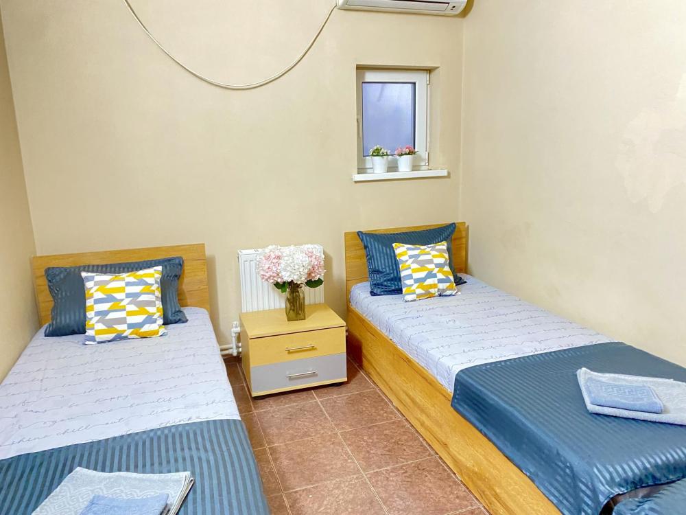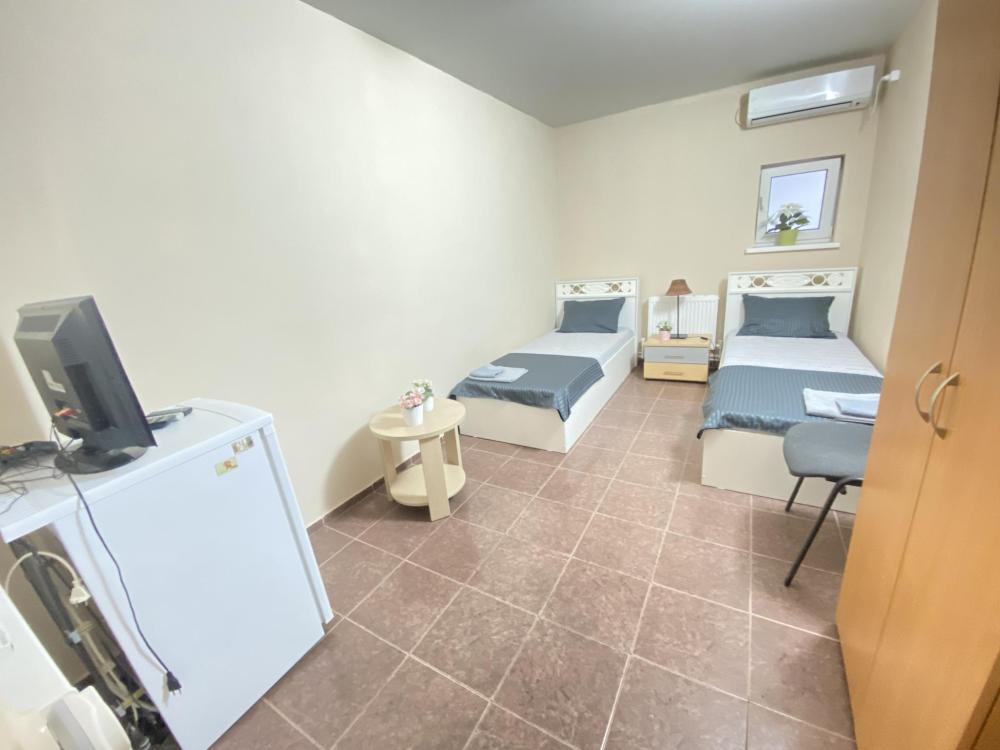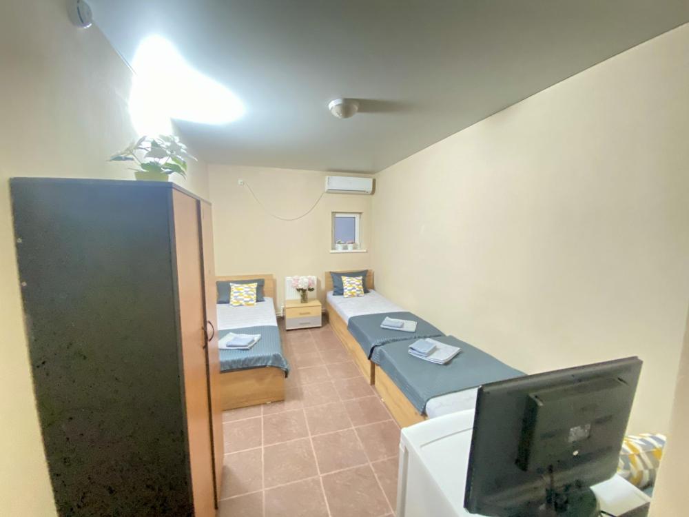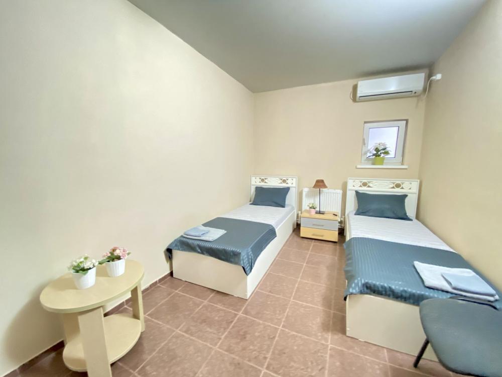 Комната эконом с 2 односпальными кроватями. В комнате есть все необходимое для комфортного проживания: мебель, односпальные кровати, телевизор, холодильник, сплит-система. С/у на этаже. Для приготовления еды можно воспользоваться общей кухней, оборудованной всем необходимым. Предоставляется постельное белье, полотенца, туалетная бумага, жидкое мыло.