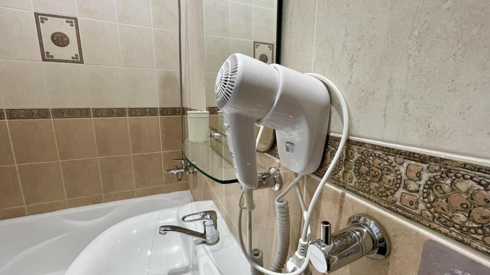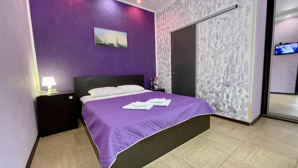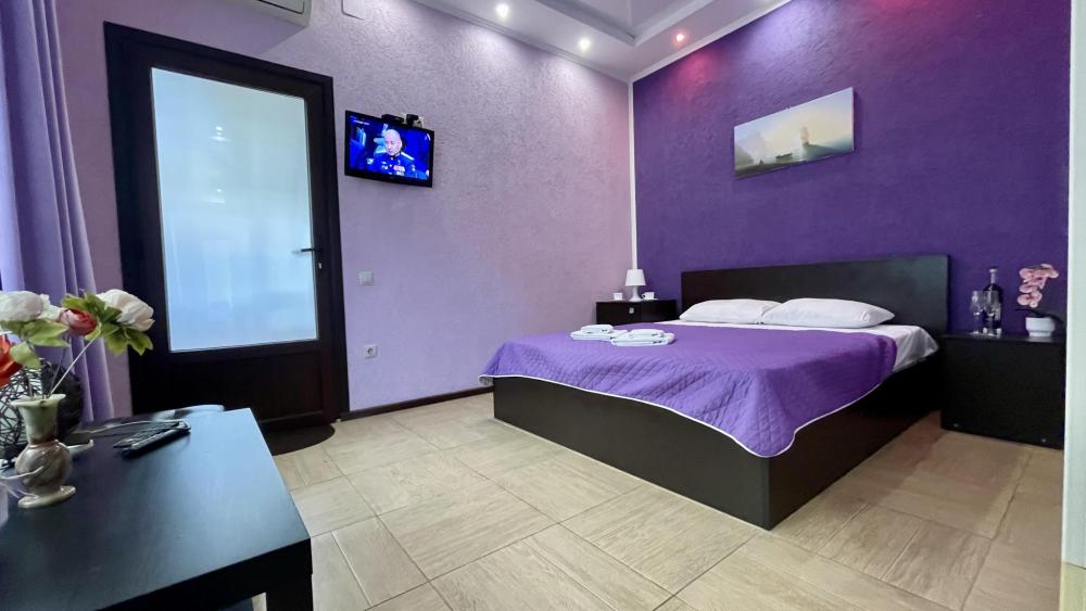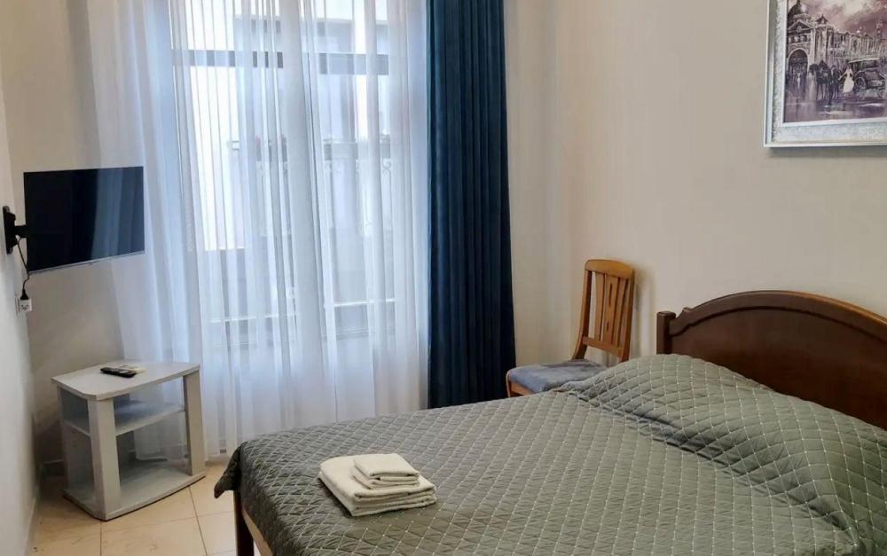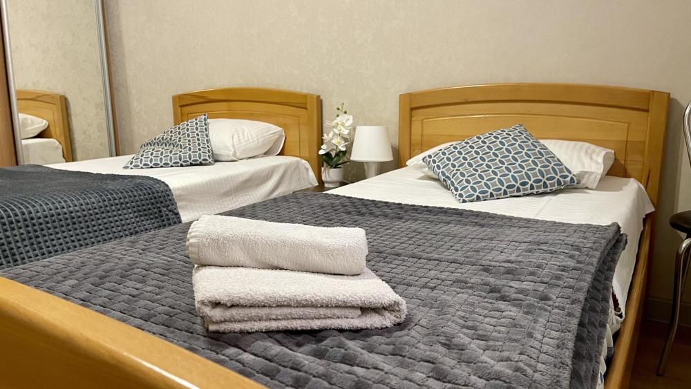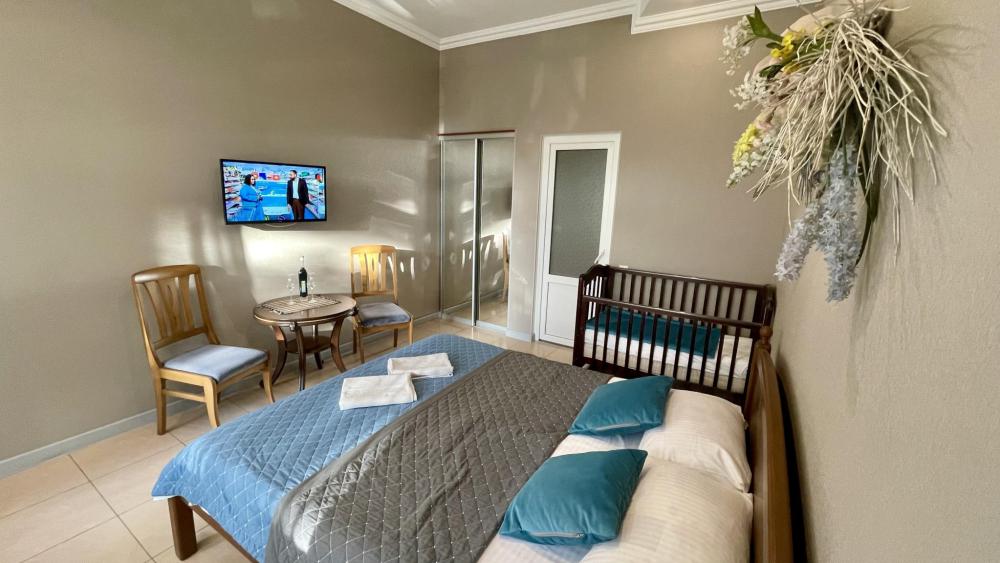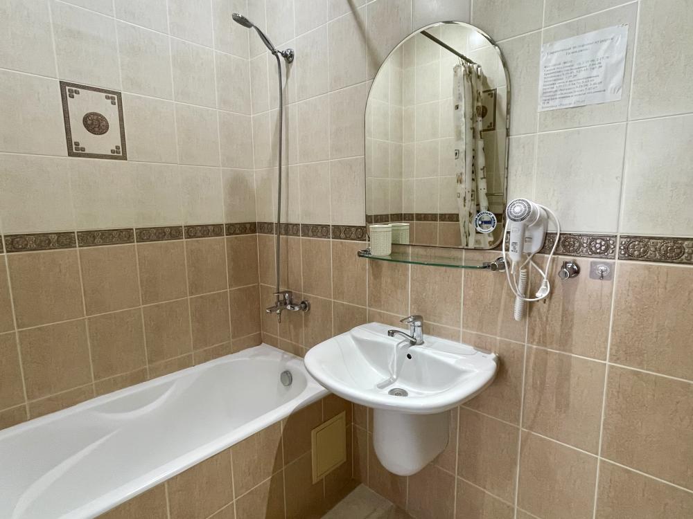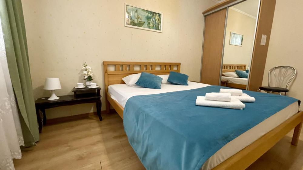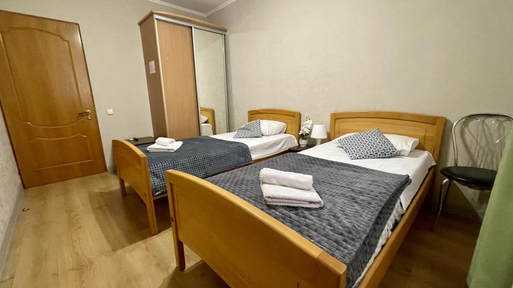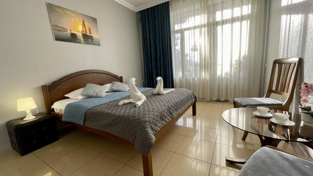 Двухкомнатный номер стандарт площадью 28 кв.м. для размещения до 4-х гостей. Для комфортного проживания гостей номер оснащен всем необходимым: двухспальная кровать, диван, 2 кондиционера, 2 телевизора, холодильник, чайник, шкаф, ванная комната, фен, набор полотенец.