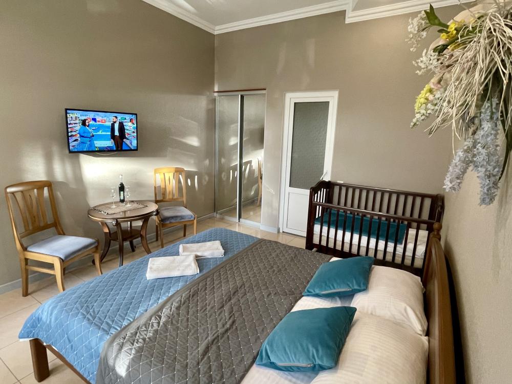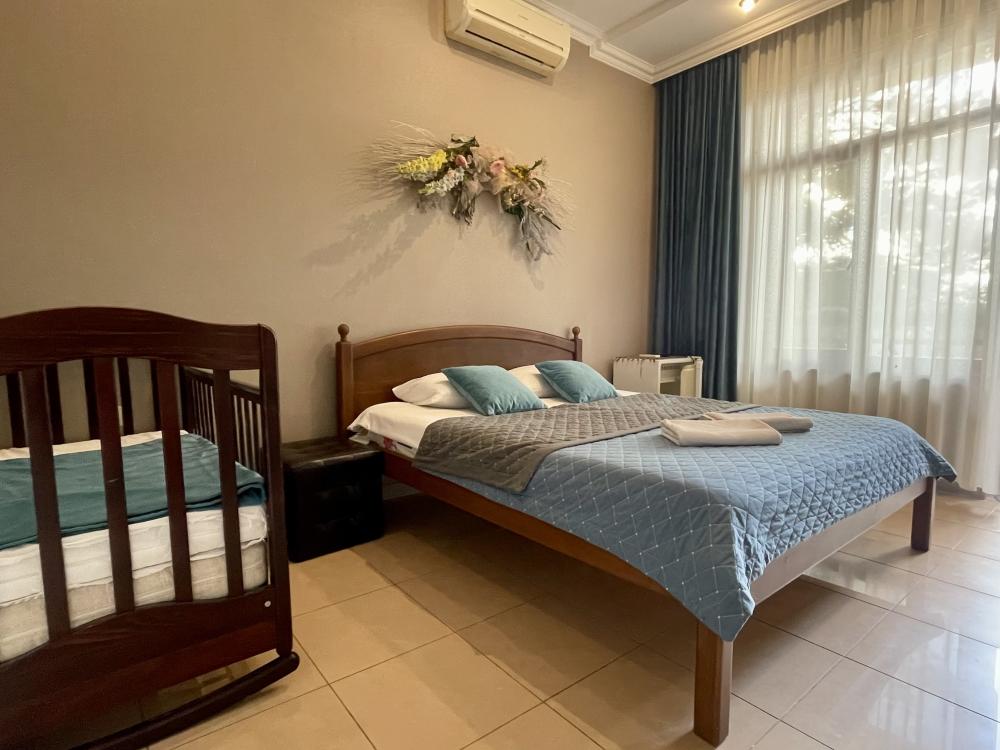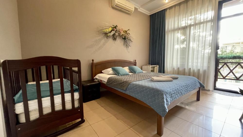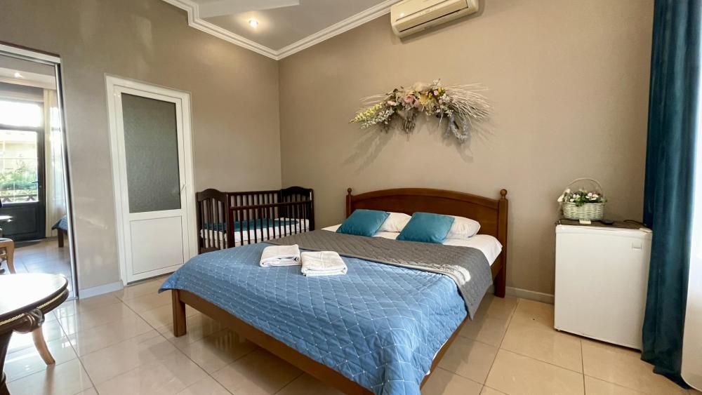 Номер стандарт семейный площадью 27 кв.м. для размещения до 4-х гостей. Для комфортного проживания гостей номер оснащен всем необходимым: двухспальная кровать, диван, кондиционер, телевизор, холодильник, чайник, ванная комната, фен, набор полотенец.