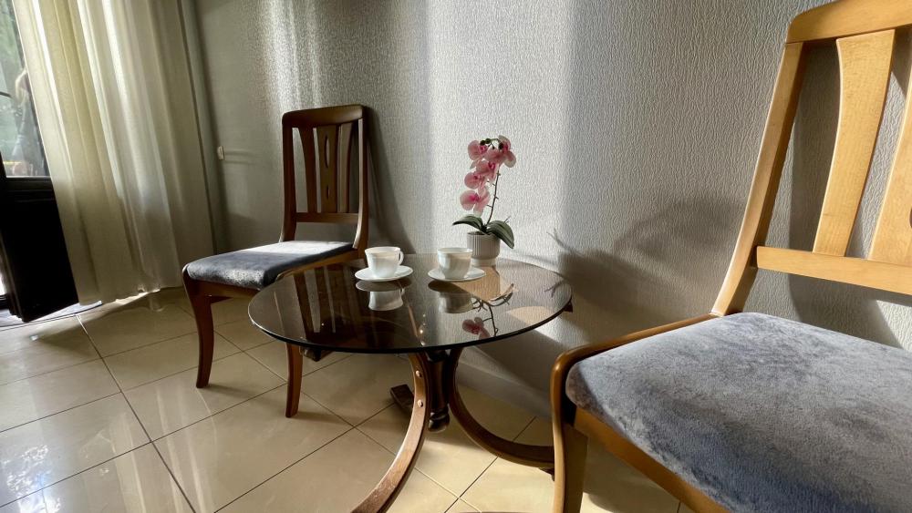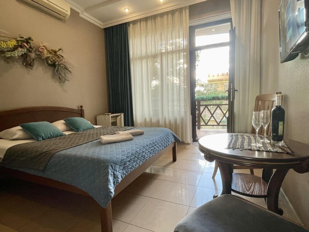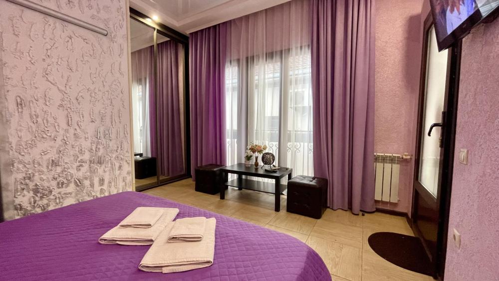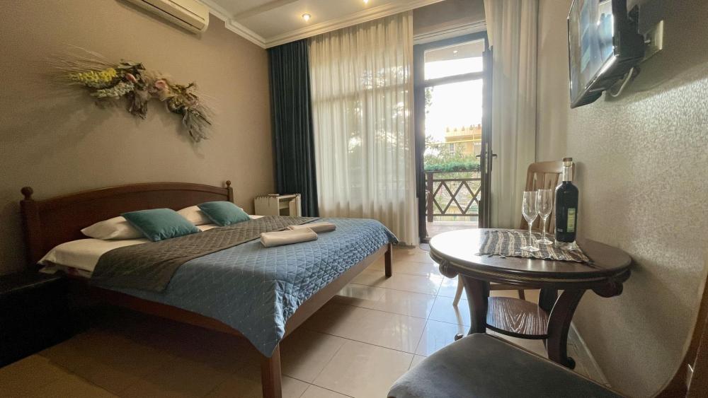 Номер комфорт с балконом площадью 18 кв.м. для размещения до 2-х гостей. Для комфортного проживания гостей номер оснащен всем необходимым: двухспальная кровать или две односпальные кровати, кондиционер, телевизор, холодильник, чайник, ванная комната, фен, набор полотенец.