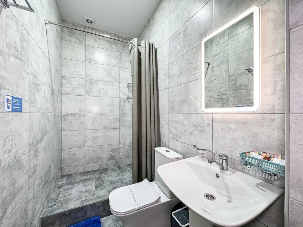 Однокомнатный номер со своим душем и туалетом. Самый недорогой номер среди имеющихся из за отсутствия в номере окна. Набор необходимых удобств - как и в других номерах, это - душ и туалет, кондиционер, телевизор, шкаф, холодильник, чайник. Односпальная кровать Номер построен 2024 г, абсолютно новый