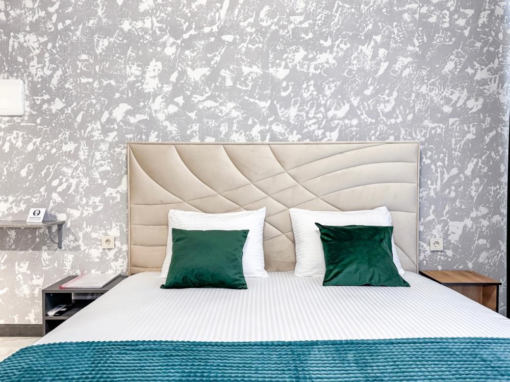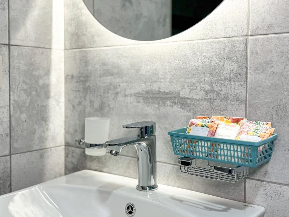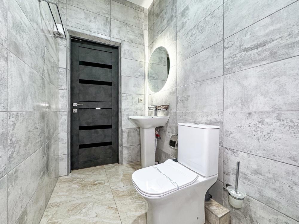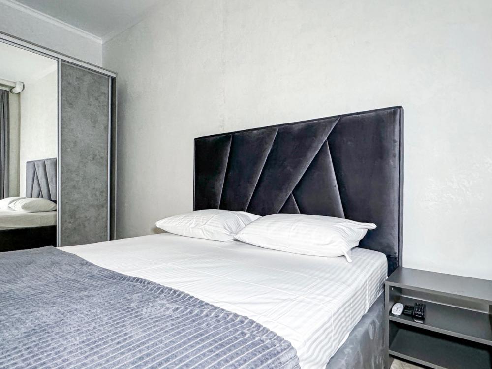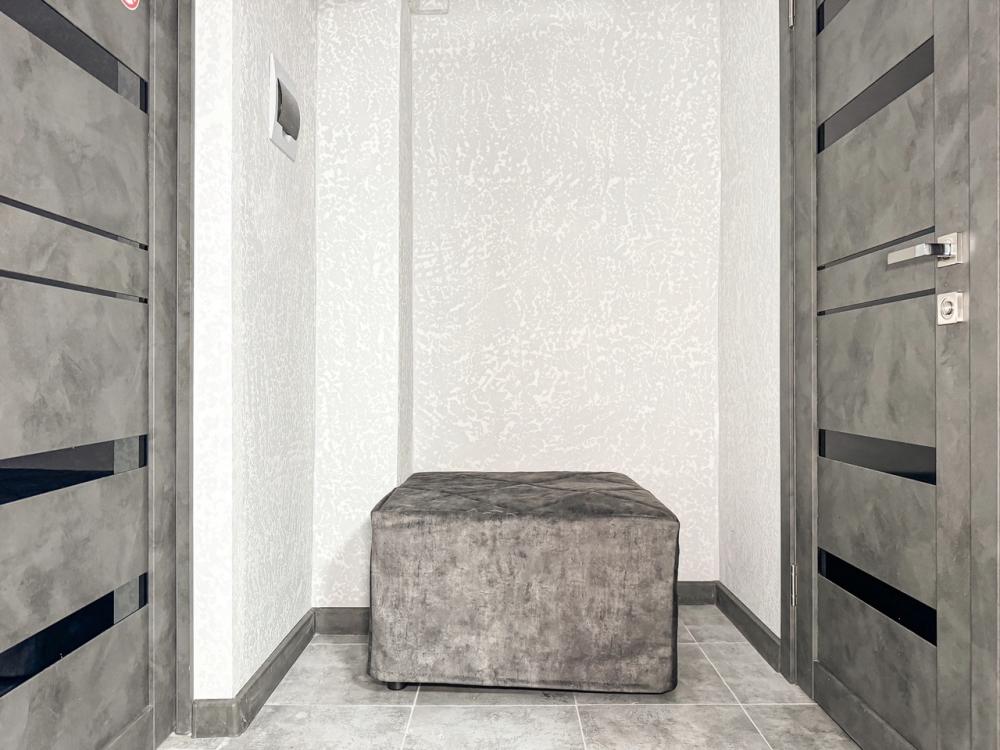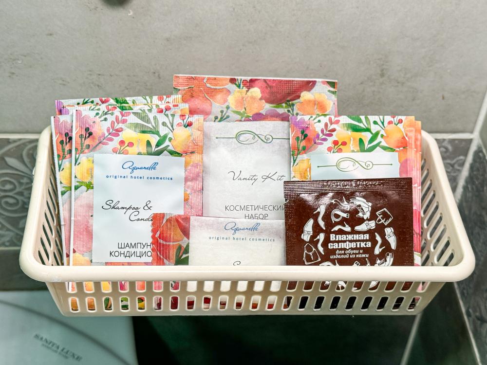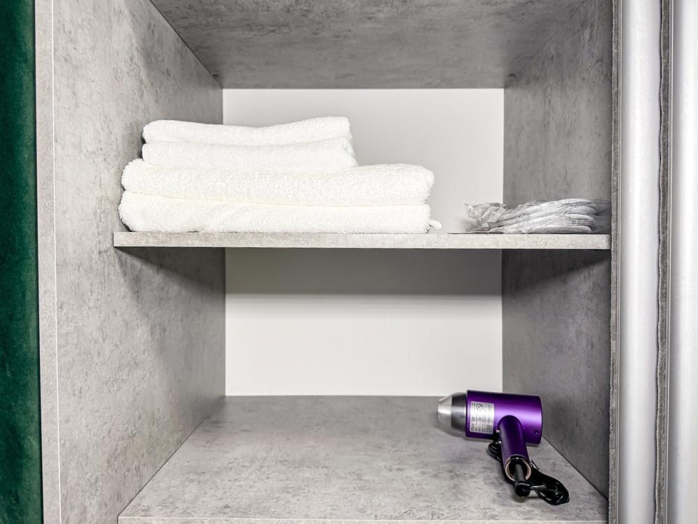 Двухкомнатный номер с двумя спальнями, площадь номера 40 кв.м. В каждой спальне двуспальная кровать, свой телевизор и кондиционер. В одной из спален + раскладной диван - где можно разместить +2 гостей. В прихожей номера шкаф купе с зеркалом в полный рост, холодильник, чайник, чашки. Прикроватные тумбы, розетки у кровати. В номере есть небольшой "мини" балкон, который смотрит на соседнее здание Утюг, доска, кухня на этаже