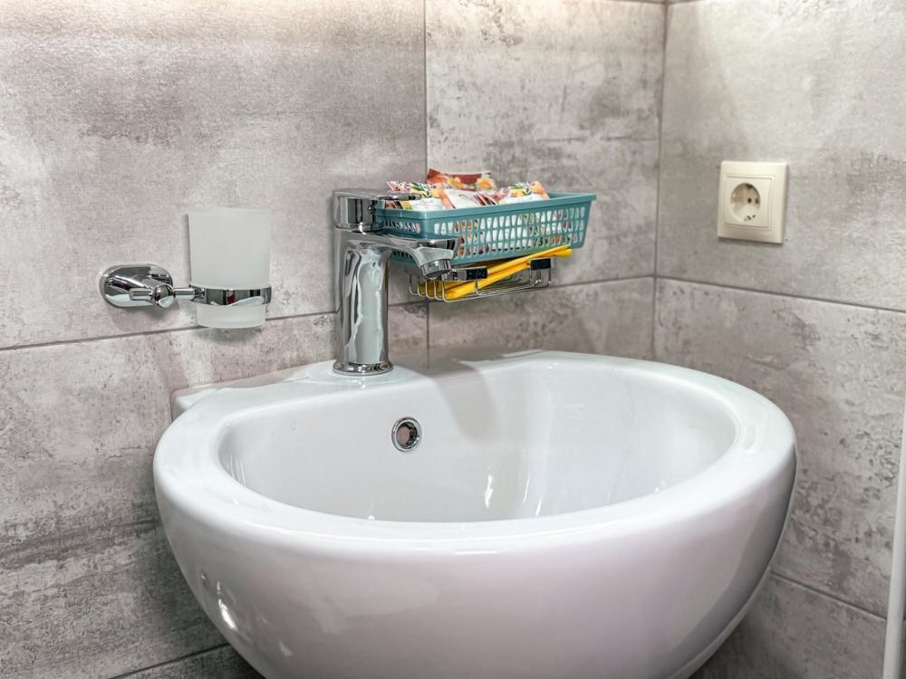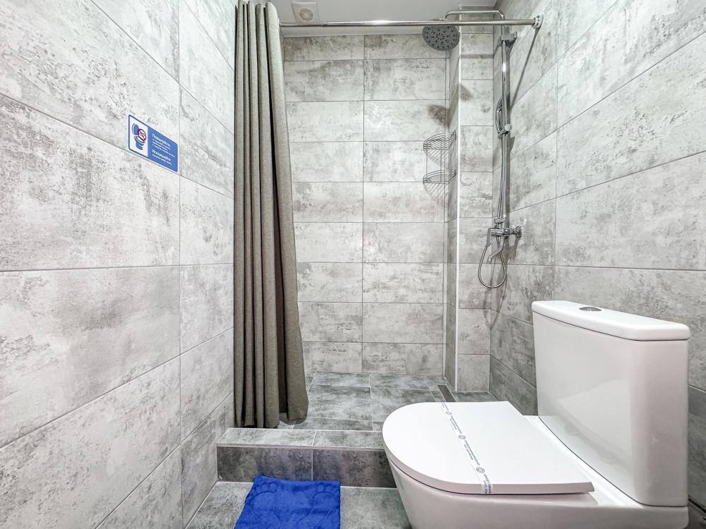 Номер на цокольном этаже Однокомнатный со своим душем и туалетом, кондиционер, холодильник, чайник, шкаф, фен - обязательные удобства всех наших номеров, и этот не исключение. В номере двуспальная кровать + односпальная + можно добавить 1 раскладное место. Итого семьей 4 гостя экономно, но комфортно можно разместиться.