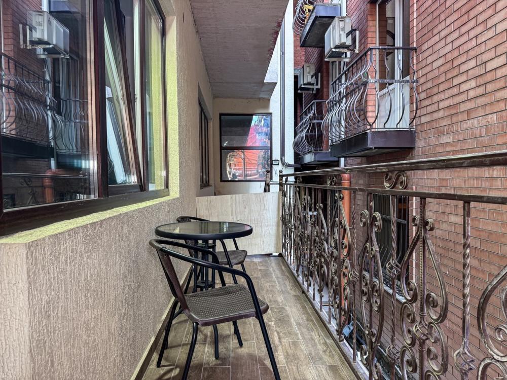 Двухкомнатный семейный номер с выходом на балкон (балкон на соседнее здание). Таких номеров у нас всего 2 - №7 и №25 В одной спальне двуспальная кровать Во второй раскладывающийся диван Душ, туалет, кондиционер, шкаф, холодильник, телевизоры, чайник с чашками.