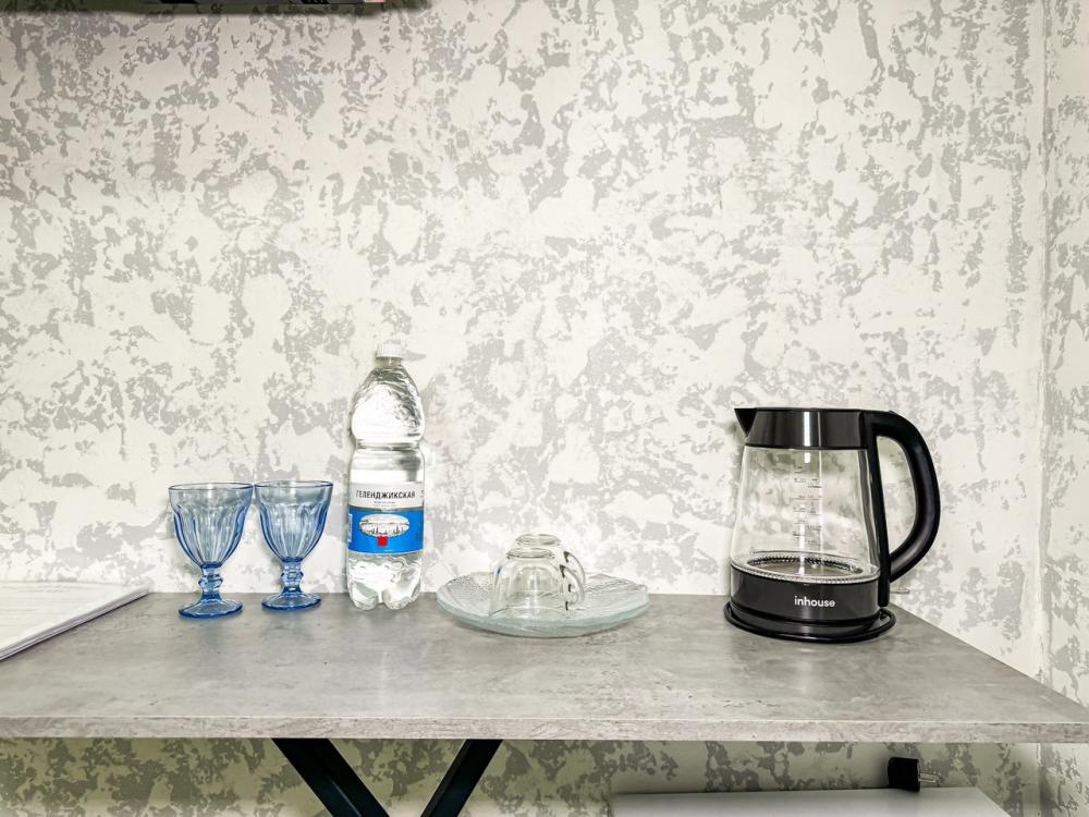 Просторный двухкомнатный номер с красивым балконом на Геленджикские сосны. Плоащь номера 50 кв .м. Свой душ и туалет, фен. Большой холодильник и шкаф с зеркалом в полный рост. В каждой спальне двуспальная кровать, прикроватные тумбы, розетки у кроватей. Стол, стулья, чайник с чашками. WI FI, утюг с доской и кухня на этаже