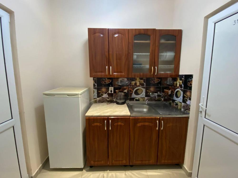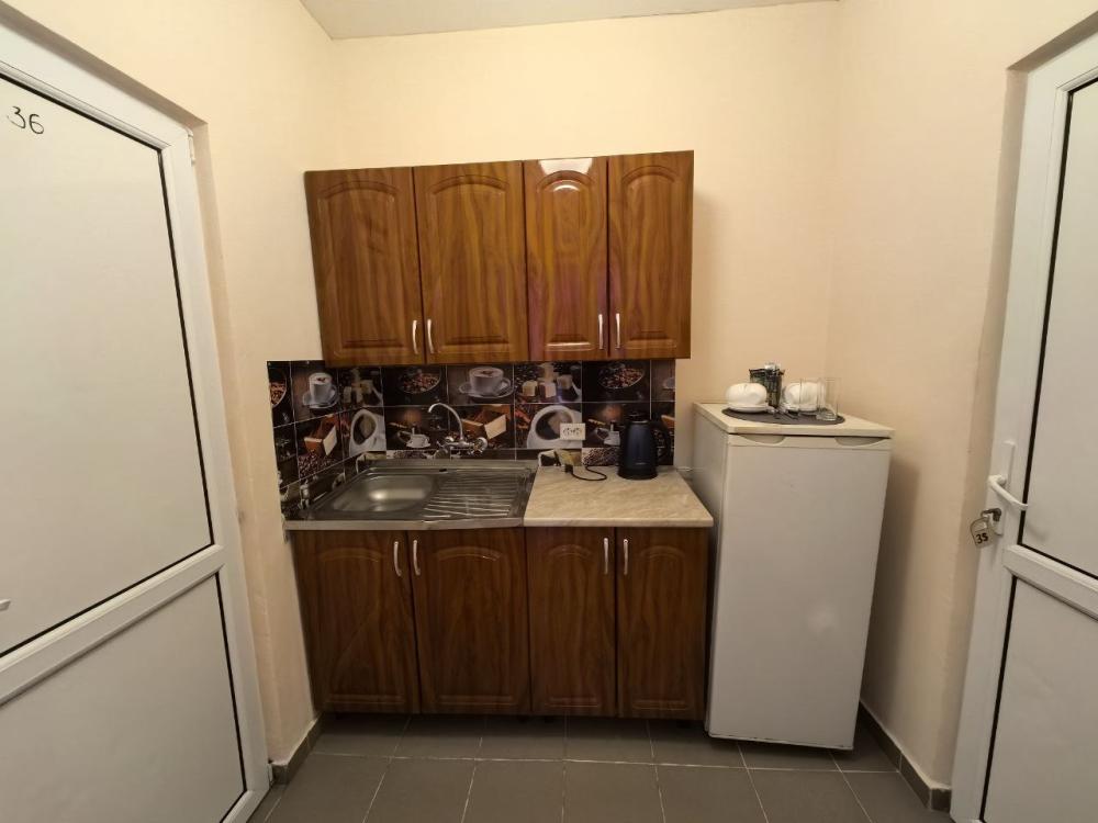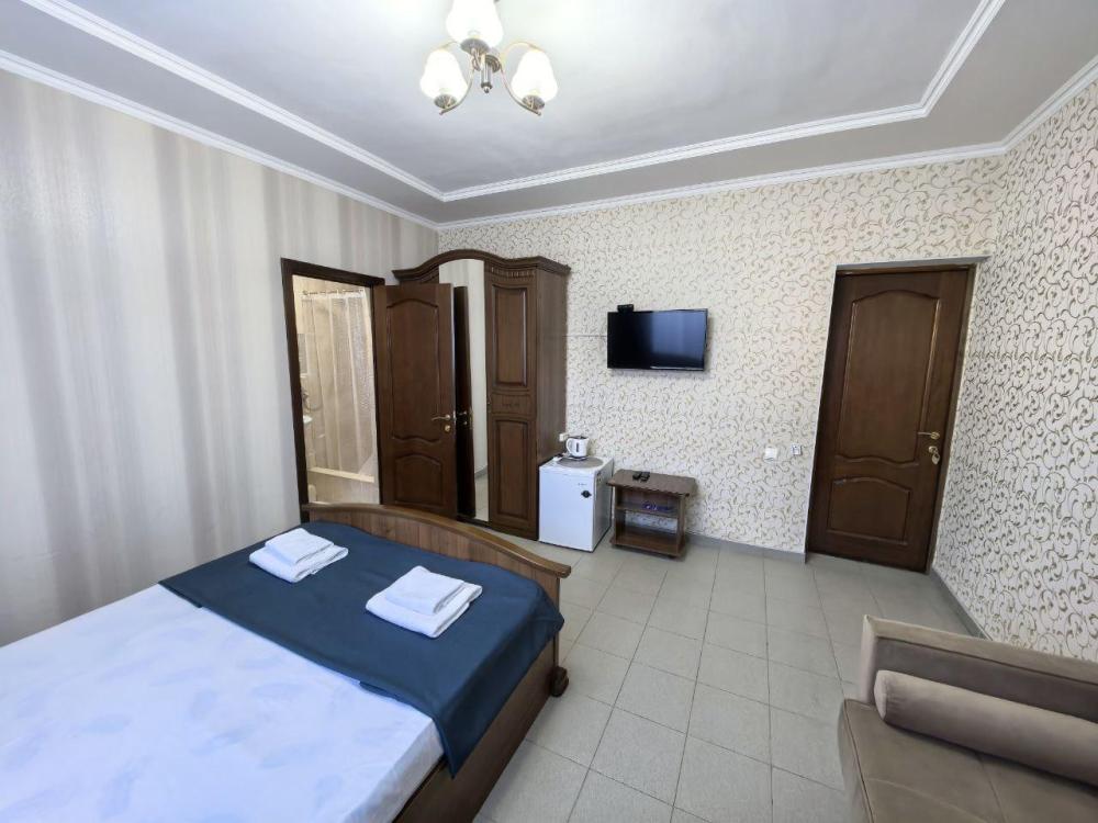 2х комнатный стандарт с мини кухней на 6-8чел В номере: Душ-Туалет в каждой комнате Полотенце Бесплатный Wi-Fi Сплит-система Холодильник Чайник Мини-Кухня Телевизор Кровати: Две двухспальные кровати Две односпальные кровати Два доп места, раскладушки. Номер выходит в коридор из которого можно попасть на общий большой балкон, оборудованный столами стульями. Где можно отдохнуть и встретить закат и восход солнца с видом на море или город