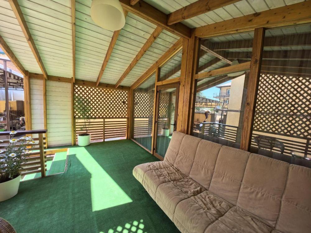 Делюкс 4х местный В номере: Душ-Туалет Полотенце Бесплатный Wi-Fi Сплит-система Мини холодильник Чайник Телевизор Кровати: Одна двухспальная кровать Двухспальный диван Номер выходит в коридор из которого можно попасть на общий большой балкон, оборудованный столами стульями. Где можно отдохнуть и встретить закат и восход солнца с вином на море или город.