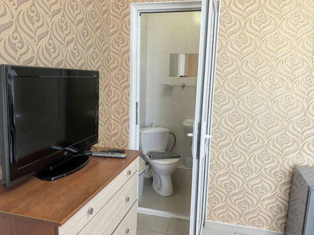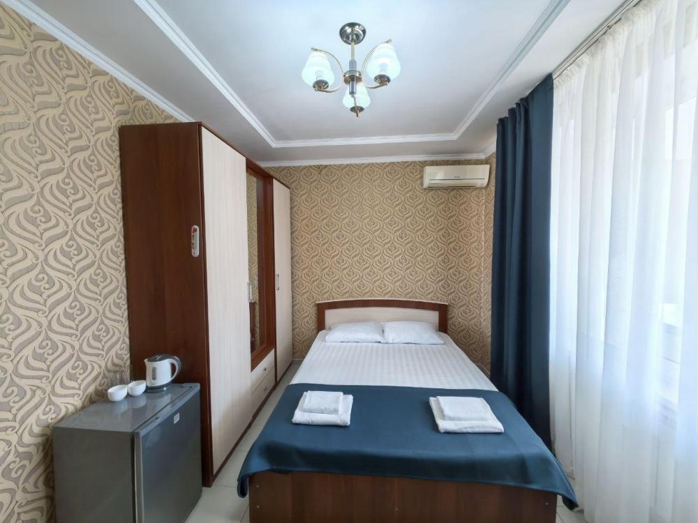 Двух местный номер стандарт на выбор с одной двухспальной кроватью, либо с двумя односпальными кроватями. В номере, чайник, кружки, стаканы, плазменный телевизор, Мини холодильник, Wi-Fi бесплатный, Сплит система, душ, туалет, полотенце. В номе есть душ туалет, постельное, полотенце. Номер выходит в коридор из которого можно попасть на общий большой балкон, оборудованный столами стульями. Где можно отдохнуть и встретить закат и восход солнца с видом на море или город.