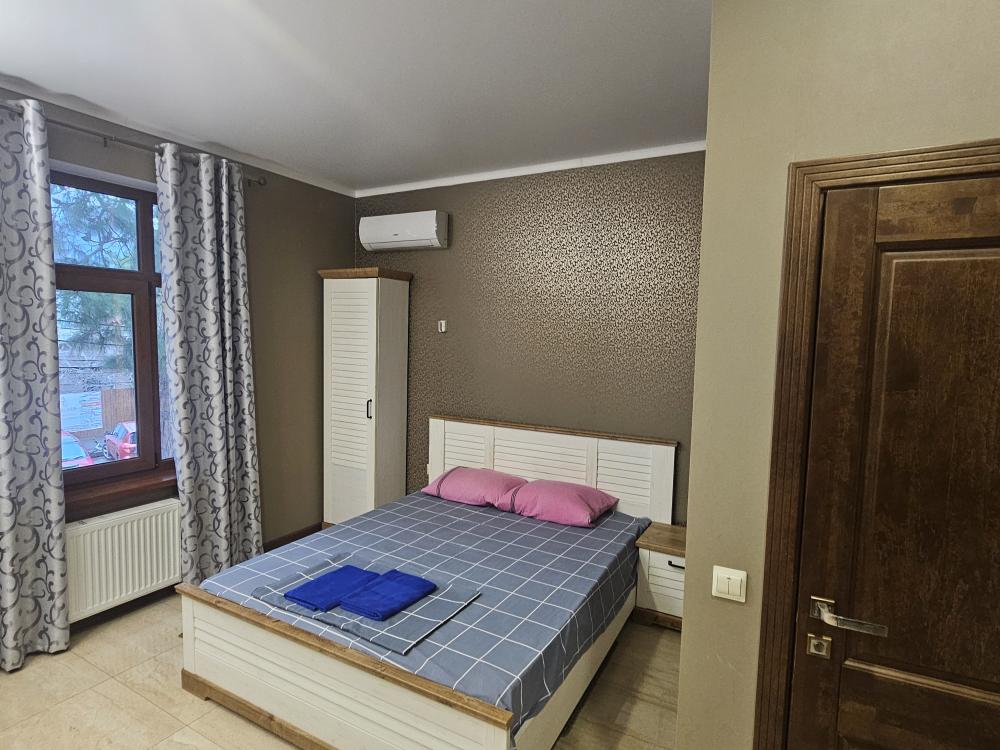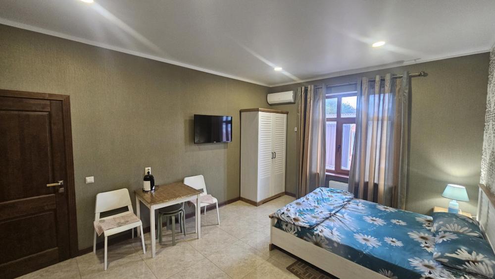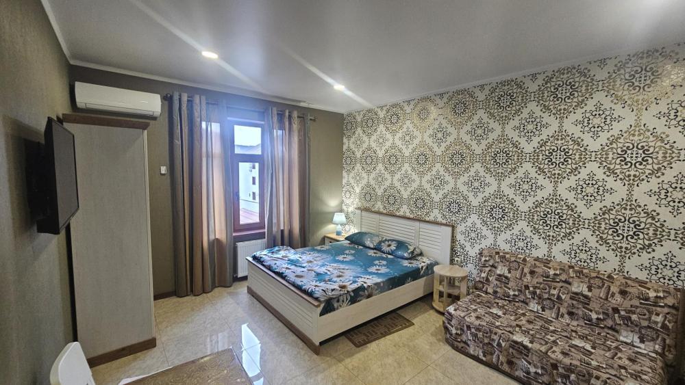 Комната стандарт семейная с 1 двуспальной кроватью и диваном. В комнате: телевизор, кондиционер, холодильник, санузел с душем.