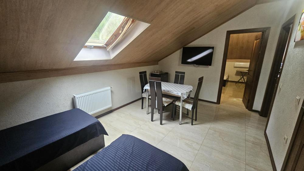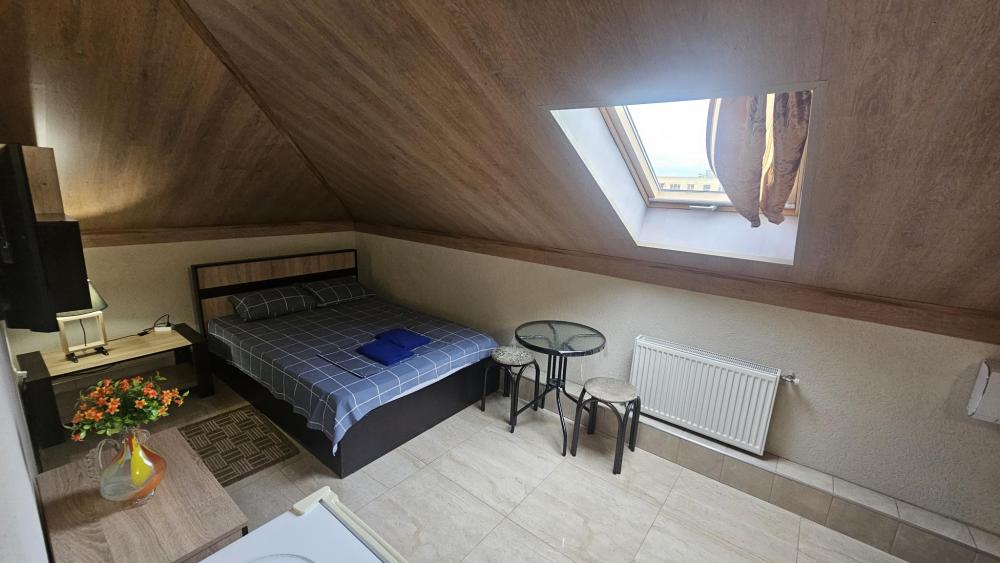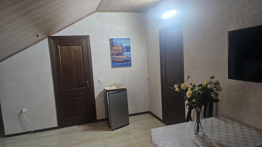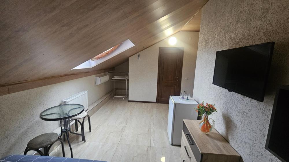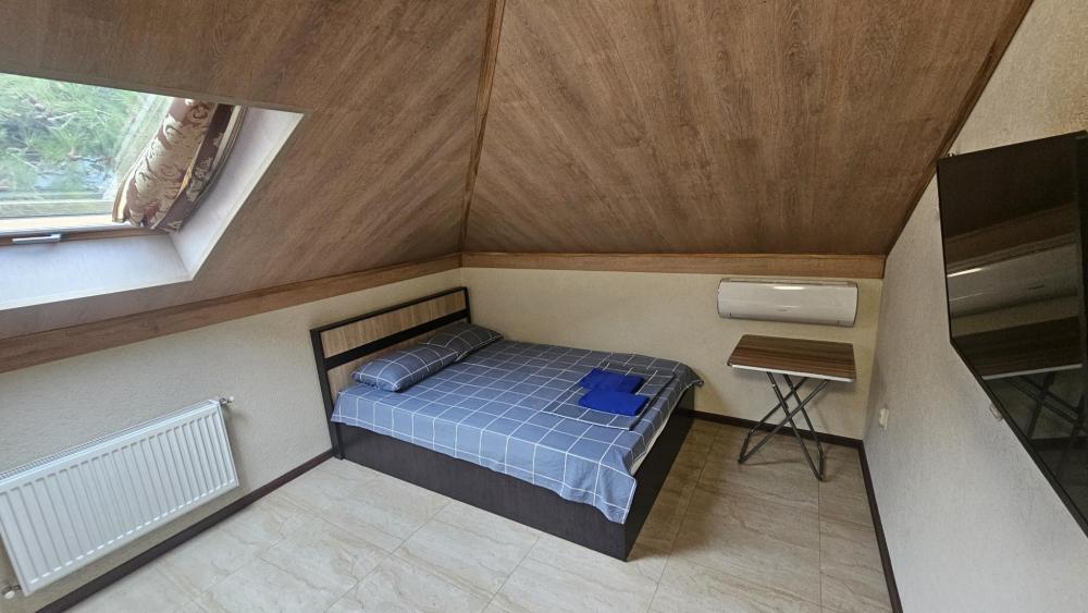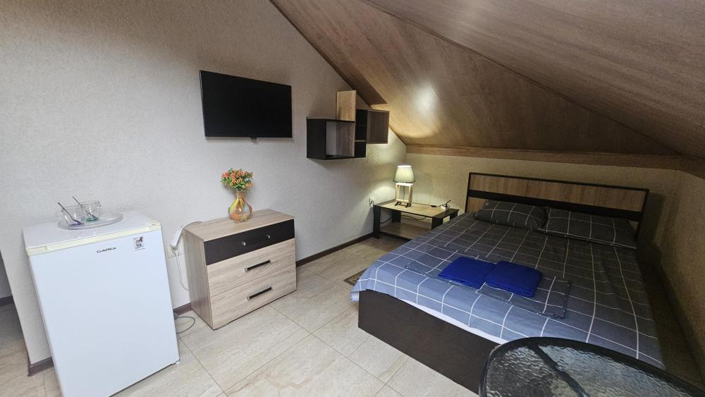 Комната стандарт с 1 двуспальной кроватью (мансарда). В комнате: телевизор, кондиционер, холодильник, санузел с душем.