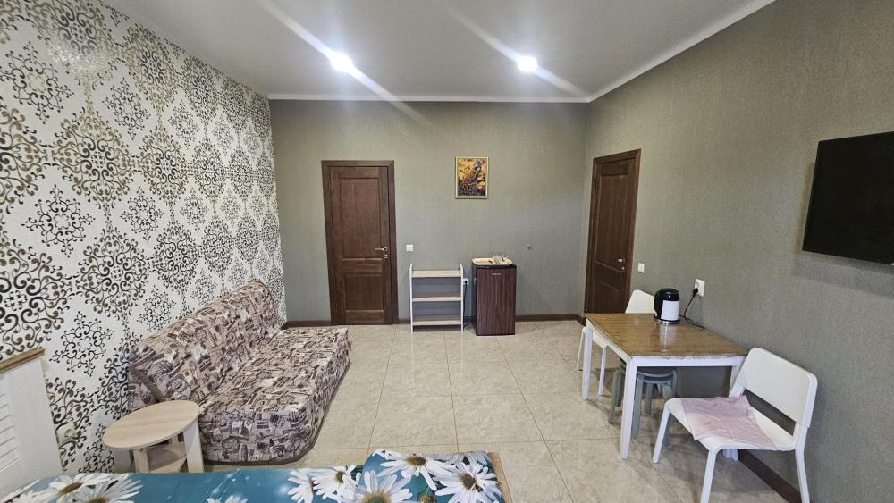 2-комнатная комната люкс с 1 двуспальной кроватью и диваном. В комнате: телевизор, кондиционер, холодильник, санузел с душем.
