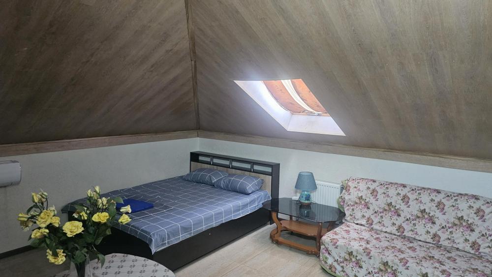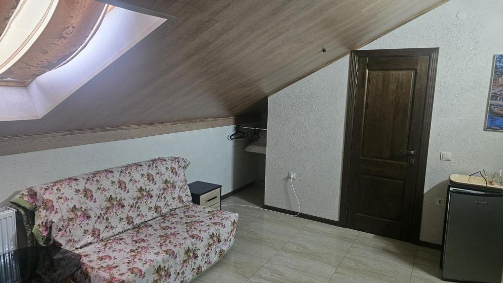 Комната стандарт с 1 двуспальной кроватью и диваном (мансарда). В комнате: телевизор, кондиционер, холодильник, санузел с душем.