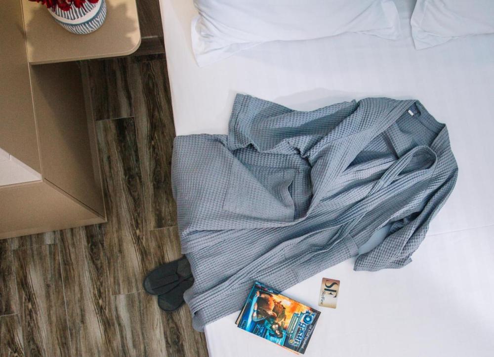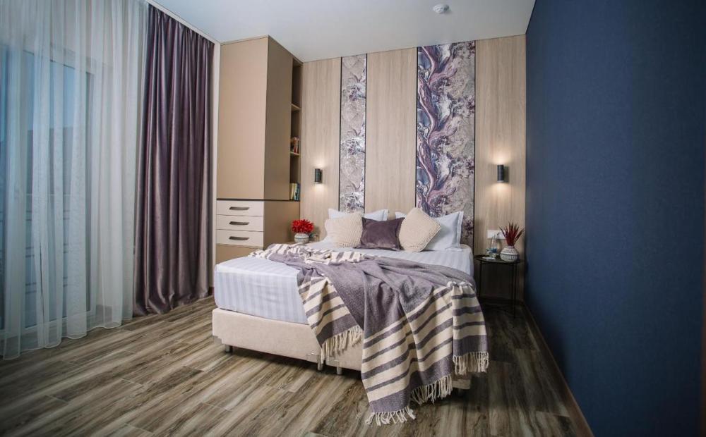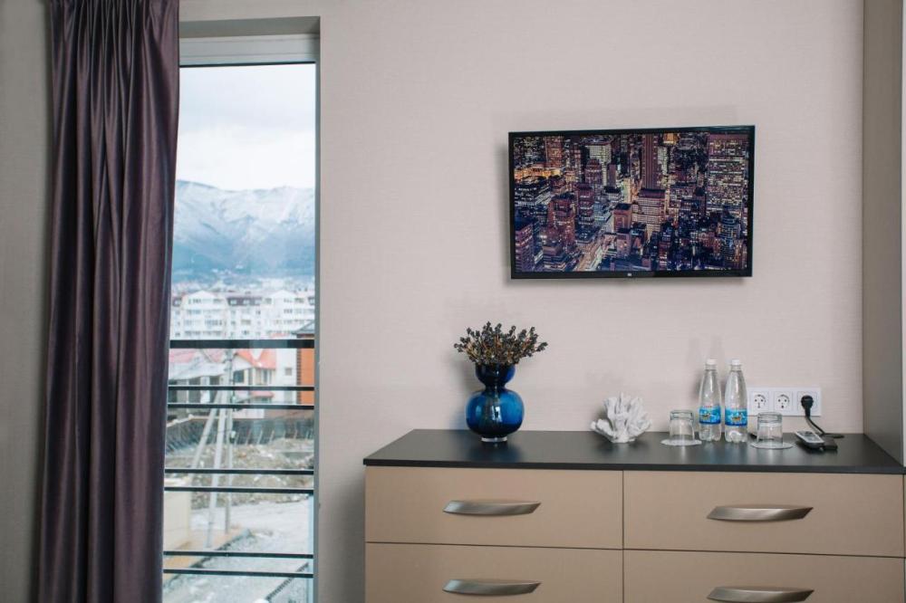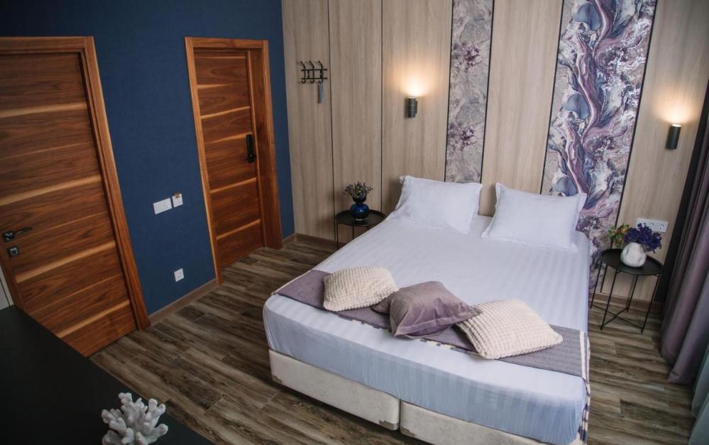 Комната уровня Комфорт с двуспальной, есть дополнительное место размещения с ортопедическим матрасом 20 кв.м. Для гостей есть все необходимое для комфортного отдыха: место для хранения вещей, работает WI-FI,телевизор,удобства.Предоставляются гостям полотенца,туалетно-косметические принадлежности,халаты.