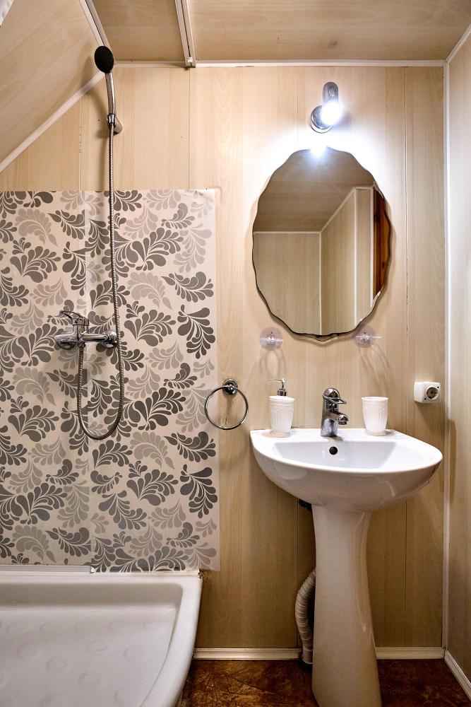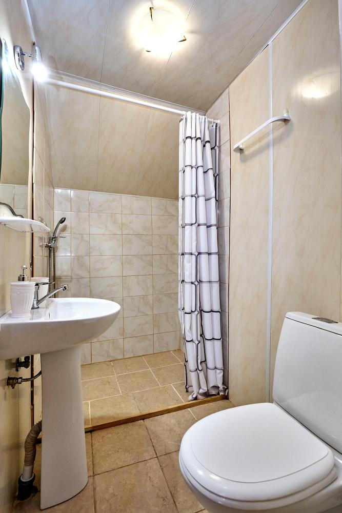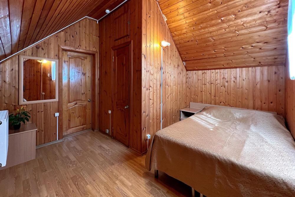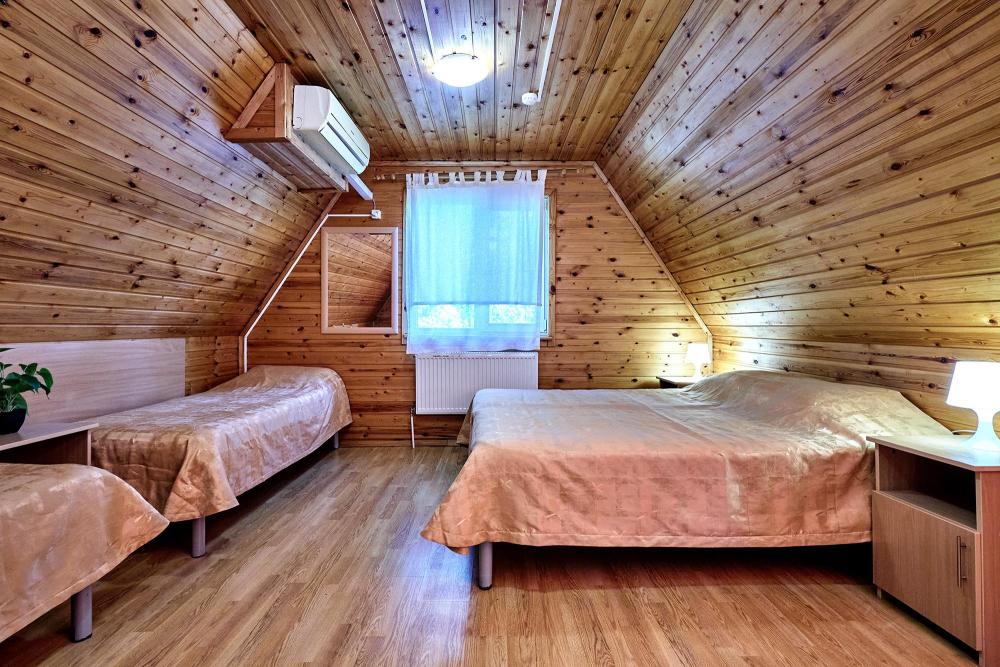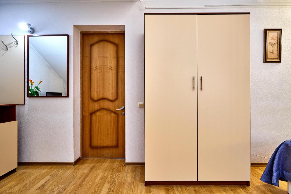 Трехместная комната эконом-класса без балкона с 1 двуспальной кроватью и одной односпальной, либо 3 односпальные кровати. В номере: сплит-система, холодильник, ТВ на 20 каналов, прикроватные тумбы и светильники, шкаф для одежды, полотенца, туалетные принадлежности, фен, электрочайник, набор посуды, санузел и душевая кабина на этаже.