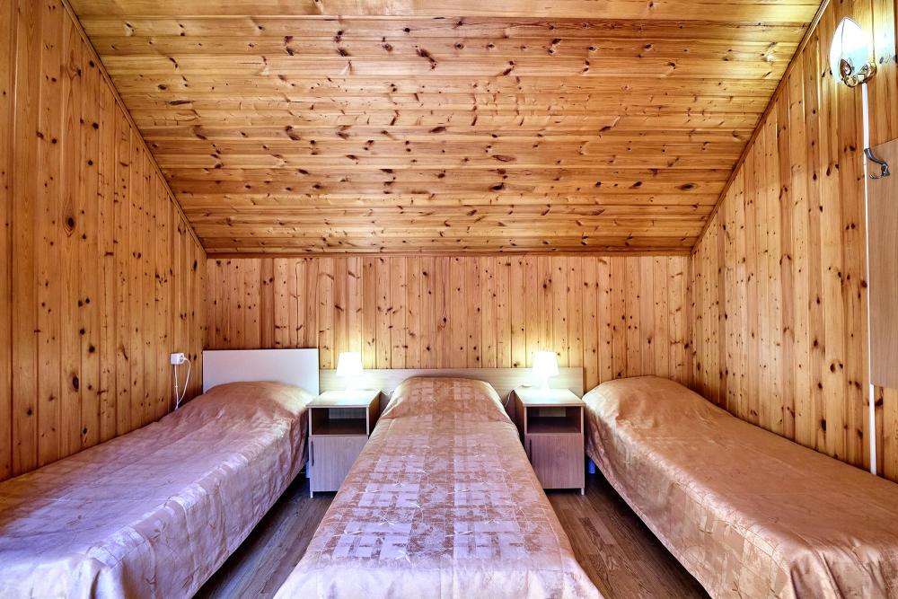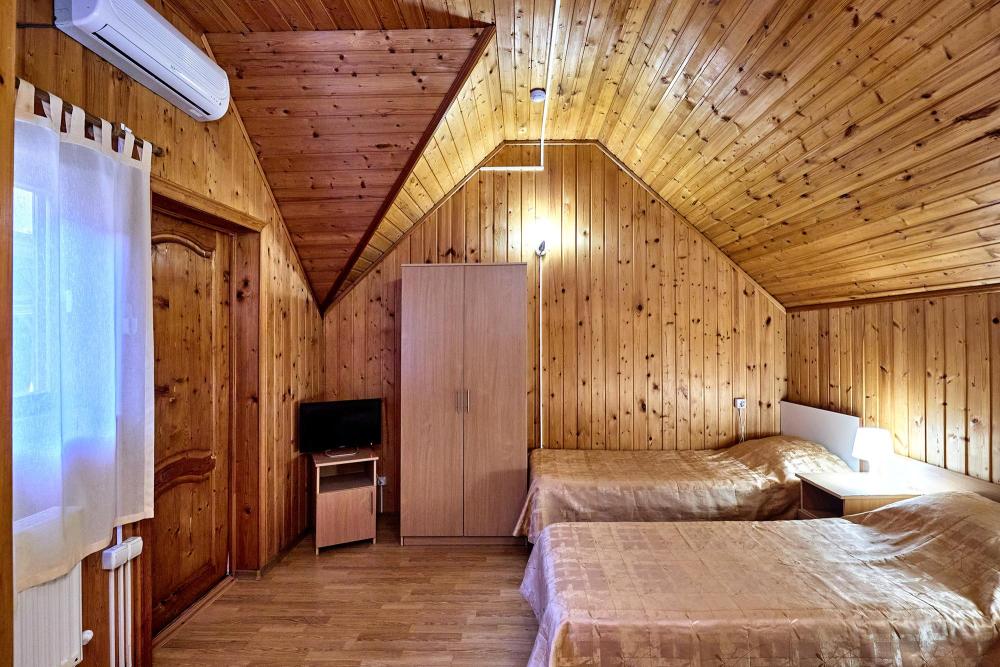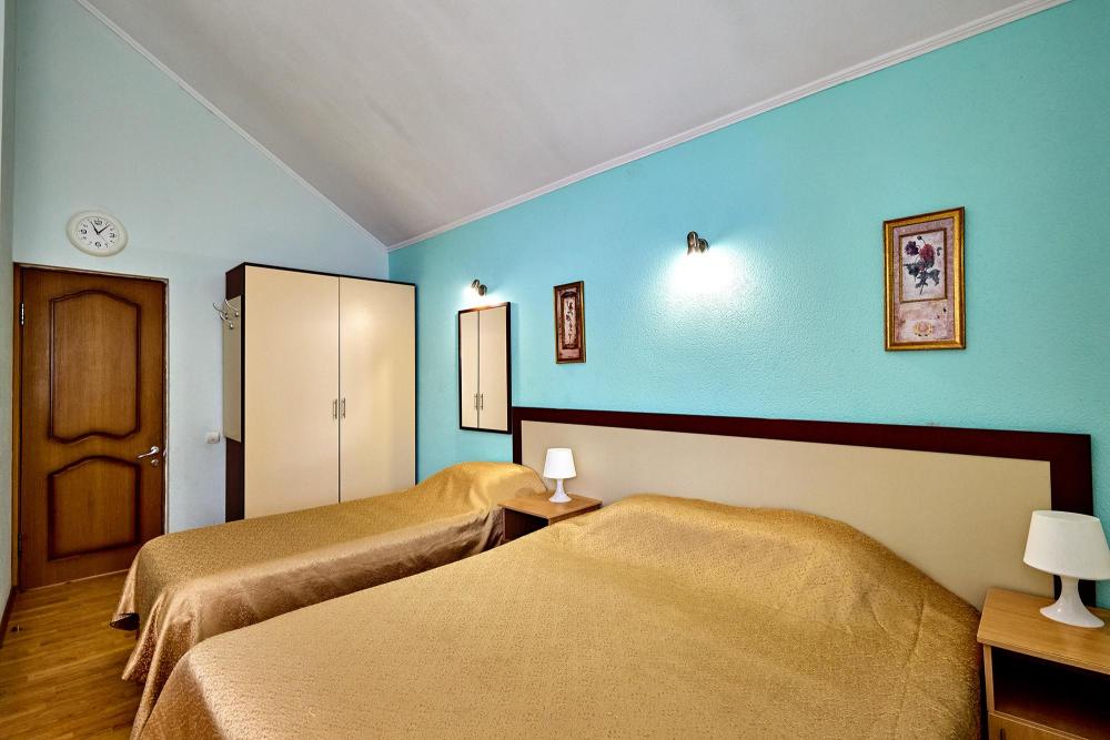 Стандартная трехместная комната без балкона с 1 двуспальной кроватью и 1 односпальной кроватью, либо три раздельные односпальные кровати. В комнате: сплит-система, холодильник, ТВ на 20 каналов, прикроватные тумбы и светильники, шкаф для одежды, полотенца, туалетные принадлежности, фен, электрочайник, набор посуды, санузел и душ в номере.
