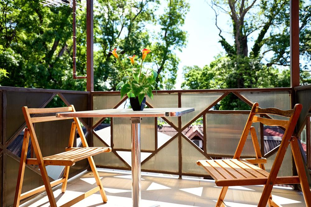 Стандартная трехместная комната с балконом с 1 двуспальной кроватью и одной односпальной кроватью, либо 3 отдельными кроватями. В комнате: сплит-система, холодильник, ТВ на 20 каналов, прикроватные тумбы и светильники, шкаф для одежды, полотенца, туалетные принадлежности, фен, электрочайник, набор посуды, санузел и ванная комната в номере, балкон.