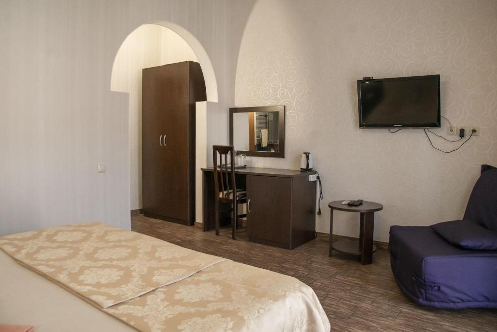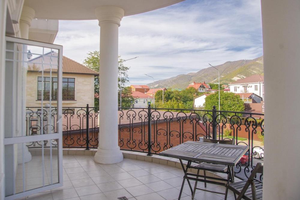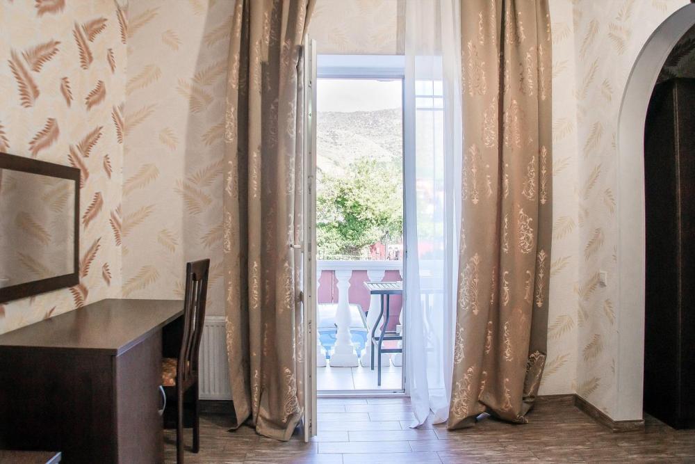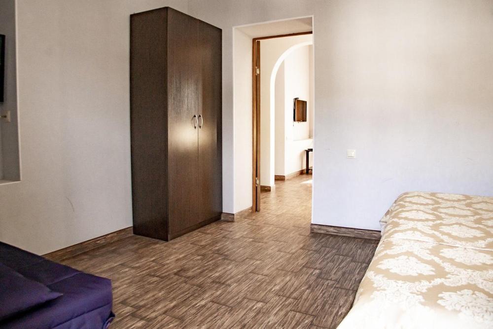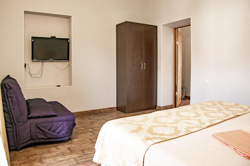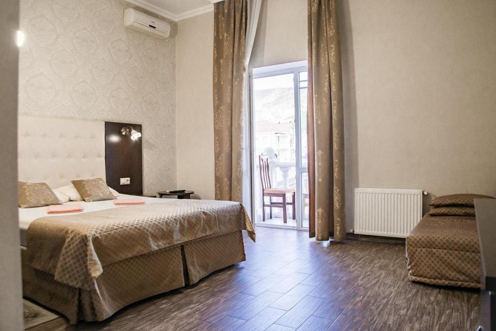 Комната рассчитана на размещение до 3 гостей. Два основных спальных места и одно дополнительное. В комнате: большая двуспальная кровать, балкон с видом на горы, телевизор с плоским экраном, собственный душ ,туалет, мини-холодильник, чайник, столовые принадлежности.