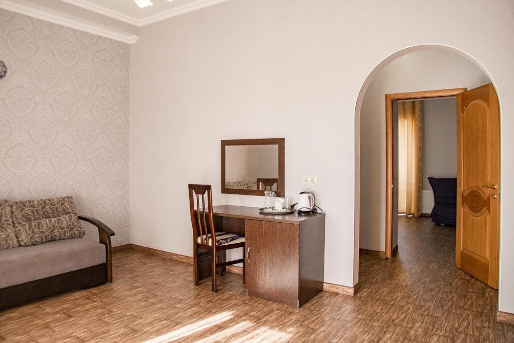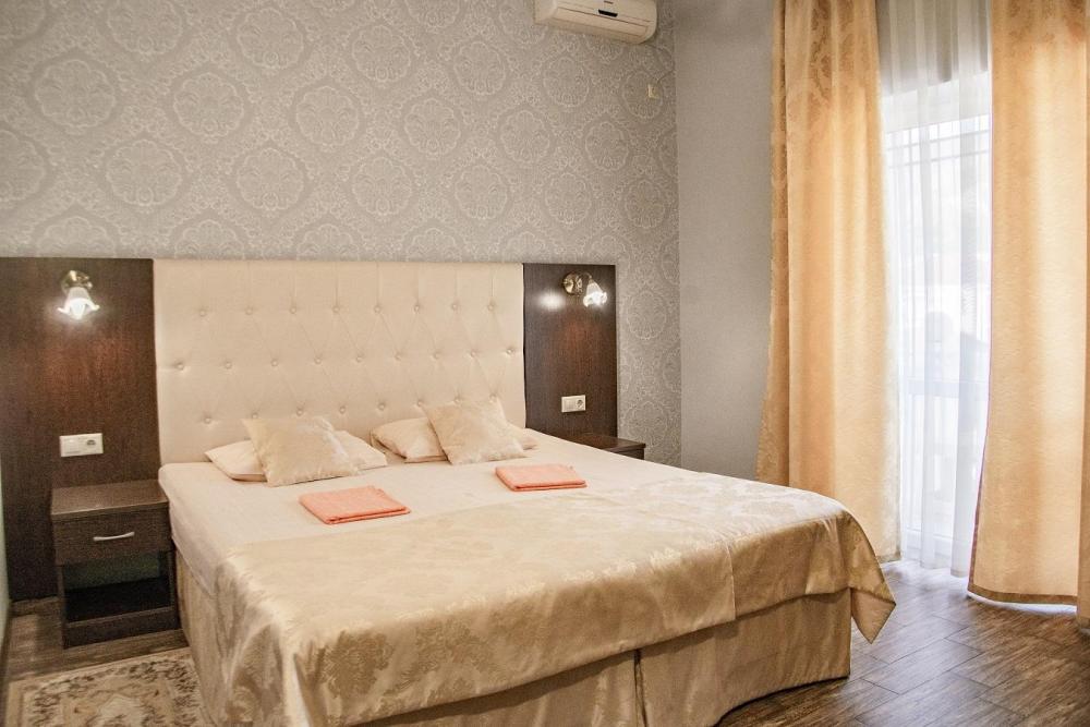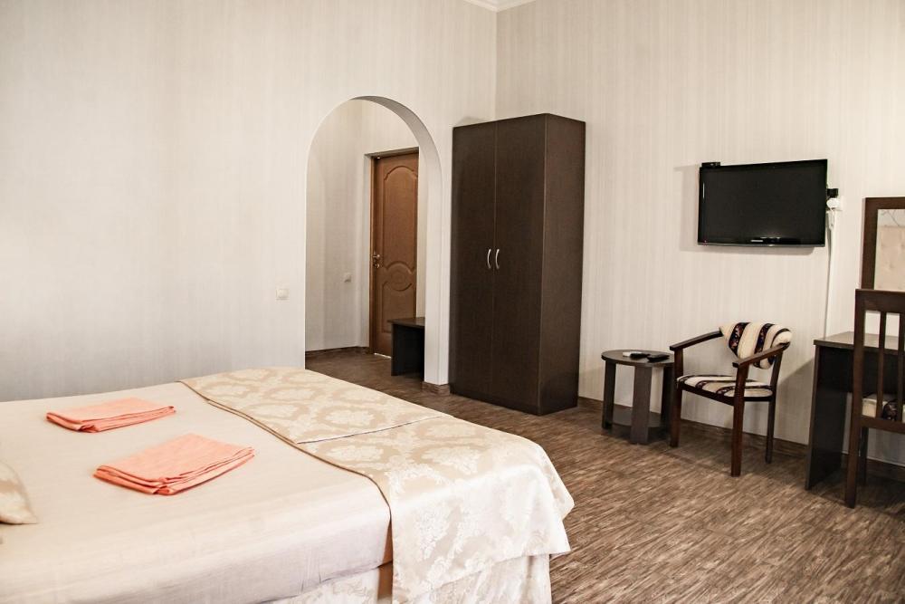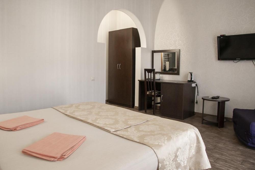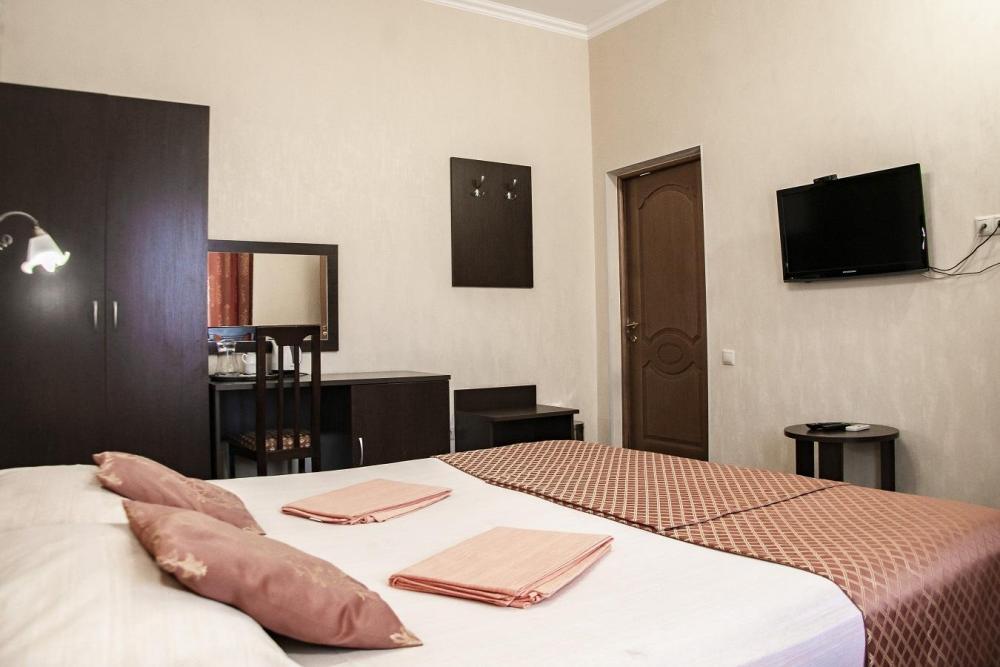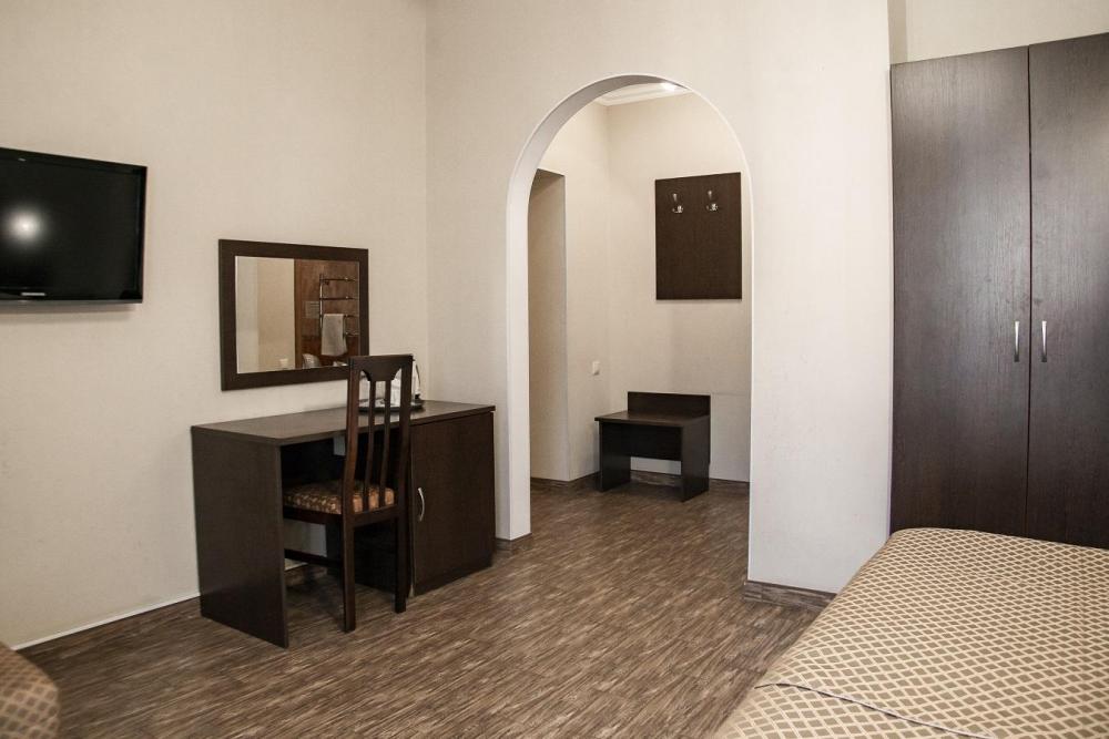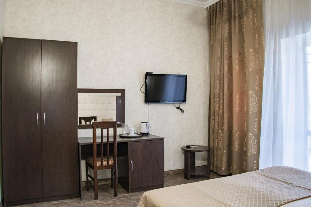 Комната рассчитана на размещение до 3 гостей. Два основных спальных места и одно дополнительное. В комнате: большая двуспальная кровать, балкон с видом на горы, телевизор с плоским экраном, собственный душ ,туалет, мини-холодильник, чайник, столовые принадлежности.