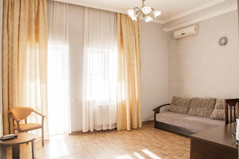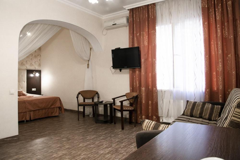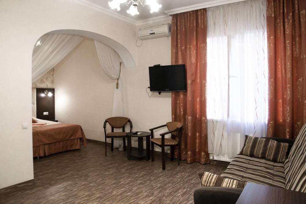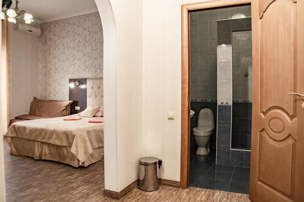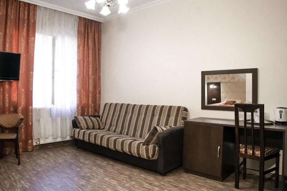 Комната рассчитана на размещение до 5 гостей. Три основных спальных места и два дополнительных. В комнате: двуспальная кровать и диван-кровать, телевизор с плоским экраном, собственный душ, туалет, мини-холодильник, чайник, столовые принадлежности. ДАННЫЙ НОМЕР со всеми удобствами находится на низком первом этаже.