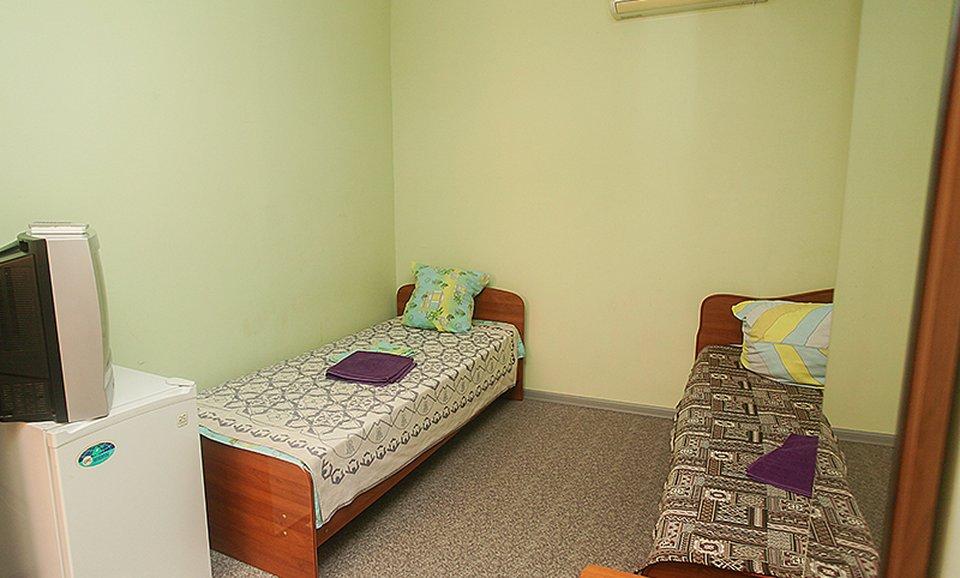 Комната стандарт с двумя односпальными кроватями для размещения до 2-х гостей. Оснащение: 2 односпальные кровати, кондиционер, телевизор, холодильник, шкаф, ванная комната с душем, туалетом и туалетно-косметическими принадлежностями.