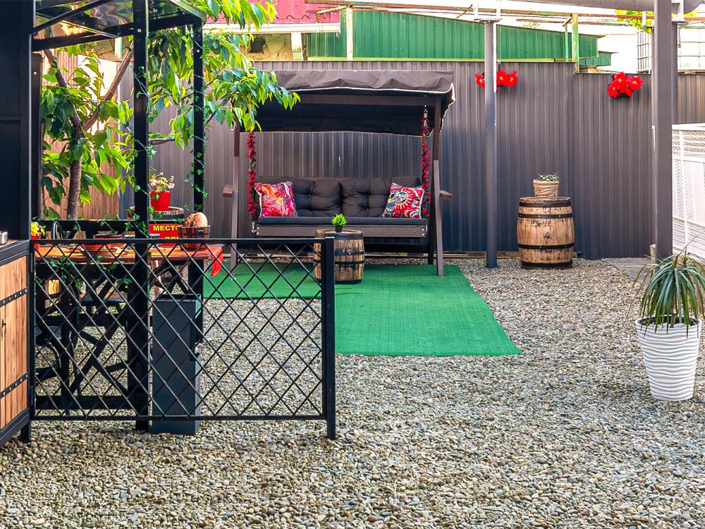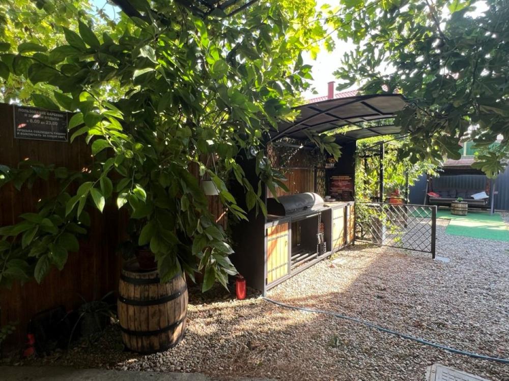 Сдается двухкомнатный уютный дом в центре Геленджика для комфортного отдыха! Дом с современные ремонтом, площадью 50 м², двухкомнатный, подходит для размещения от 4 до 6 человек. Расположен всего в 800 м ходьбы от центральной набережной и моря, что делает его идеальным выбором для тех, кто мечтает о расслабляющем отпуске на побережье. В доме есть все необходимое для вашего удобства: полностью оборудованная кухня, просторная комната для отдыха. Также имеется терраса, где вы сможете наслаждаться утренним кофе Спальные места: двухспальная кровать с ортопедическим матрасом, 2 удобных раскладных двуспальных дивана Полностью оборудованная кухня для ваших кулинарных шедевров . Вы найдете здесь газовую плиту, холодильник, электрический чайник, микроволновую печь, посуду и столовые приборы. Также установлена стиральная машинка. Современная ванная комната с душем и всеми необходимыми удобствами. Имеются все банные и гигиенические принадлежности: шампунь и кондиционер для волос, гель для душа, тапочки, набор полотенец. Наслаждайтесь полной заботой о себе в нашем уютном домике. В доме есть все необходимое для комфортного проживания: современный Smart TV, сплит система, фен, утюг и гладильная доска, всегда чистое постельное белье, вода КРУГЛОСУТОЧНО холодная и горячая, высокосортной wi-fi. На территории вам доступны: - Мангальная зона со всеми необходимыми принадлежностями - Каркасный большой бассейн (доступен с мая по сентябрь включительно) – бесплатно - Оборудованные зоны отдыха на свежем воздухе среди фруктовых деревьев - Большой уютный двор с фруктовыми деревьями, зона отдыха - Парковка во дворе и при доме под видеонаблюдением - бесплатно - Детский батут 3,70 м , качели из дерева С питомцами запрещено. Курение в специальных отведенных местах. Расположение нашего домика просто идеально! Дом находится в центре города. Развитая инфраструктура, рядом магазины (Пятерочка, Магнит, Магнит Косметик, Красное и Белое, аптека и т.д.) Все важные места легко доступны, что делает дом идеальным выбором для путешественников.