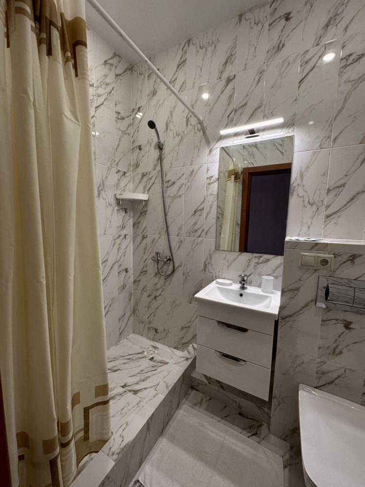 Уютный номер для 2 гостей, оборудованный всем необходимым: двуспальная кровать, телевизор, кухонный уголок, полотенца, постельное белье и санузел с душем.