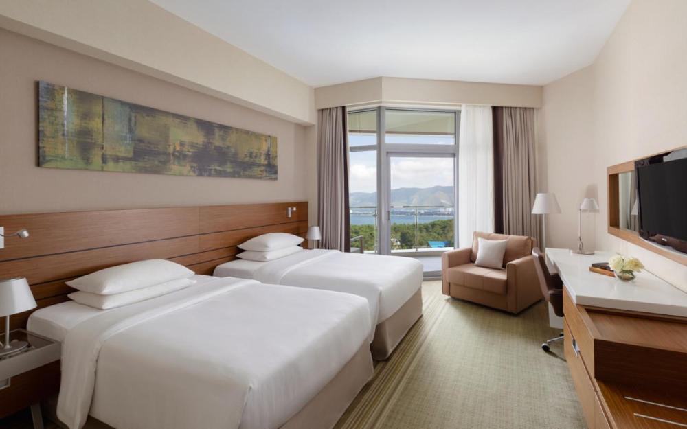 104 просторных номеров с двумя односпальными кроватями и лаконичным дизайном. Панорамные балконы с видом на море или Геленджикскую бухту.