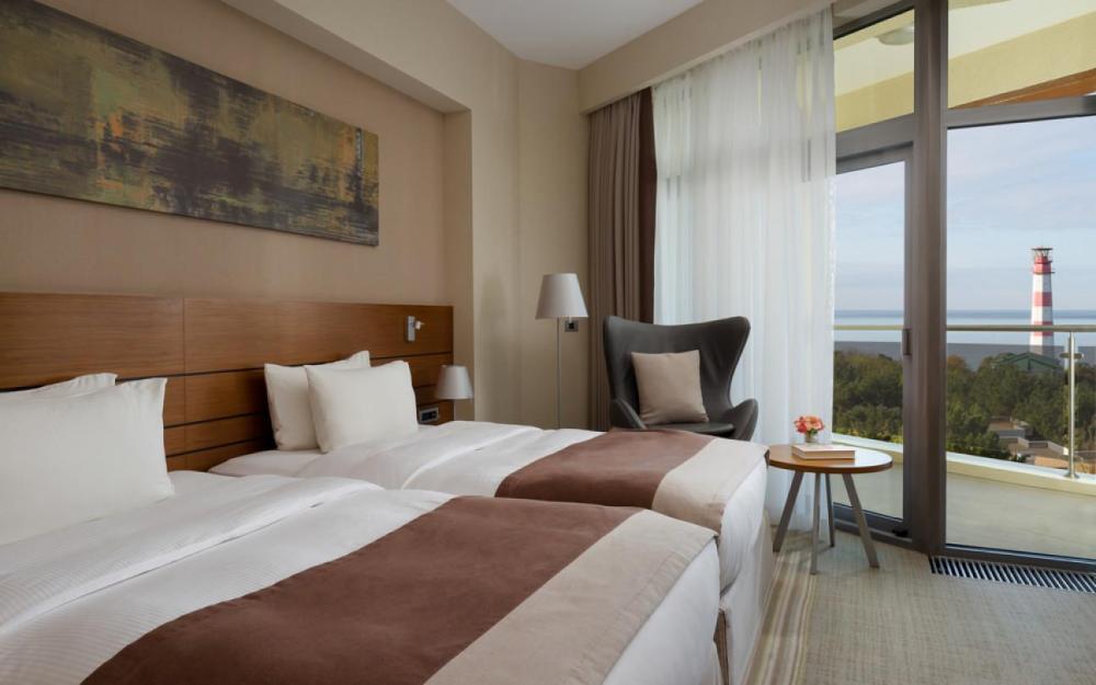 112 комфортных номеров с панорамными окнами и просторным балконом с плетеной мебелью. В номерах предусмотрены отдельные зоны для работы и отдыха. Главное отличие от категории «Стандарт» — более просторная ванная.
