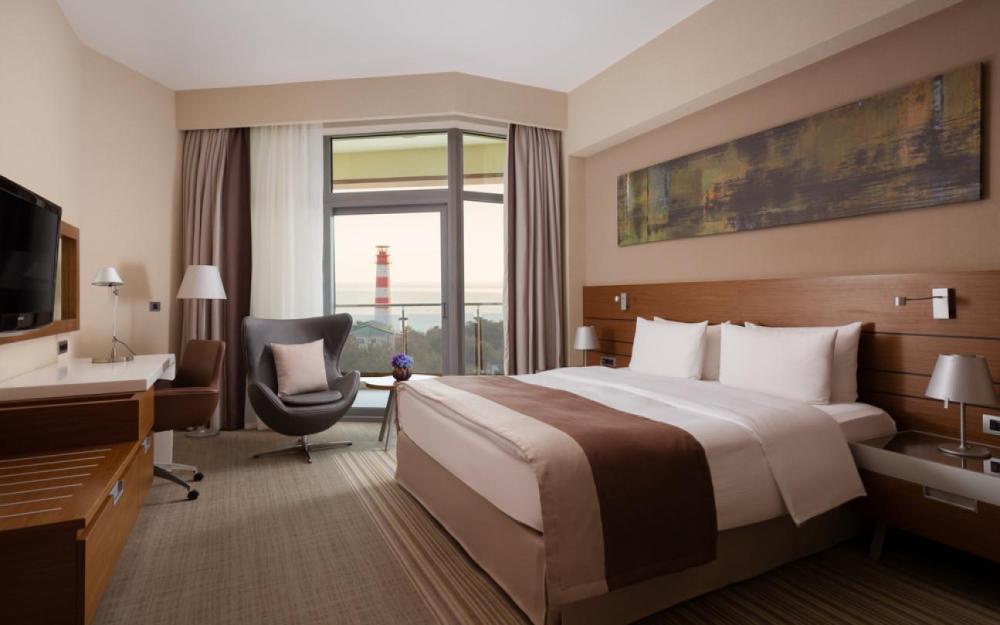 104 просторных номеров с одной большой кроватью и лаконичным дизайном. Панорамные балконы с видом на море или Геленджикскую бухту.