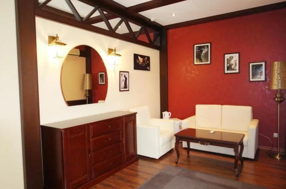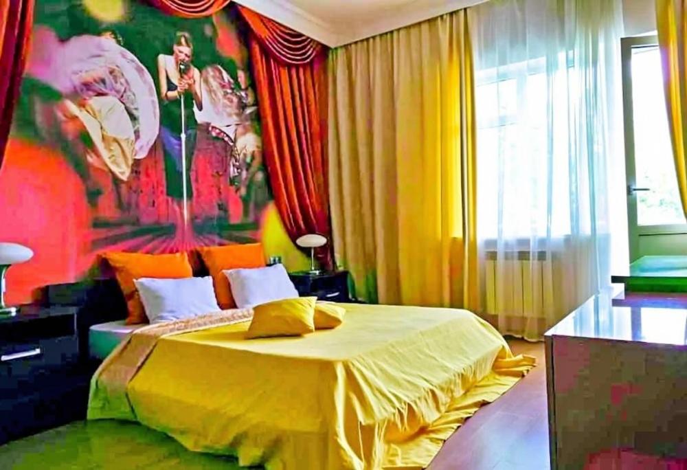 Просторный номер Люкс. Укомплектован всем необходимым: двуспальная кровать, просторный шкаф-купе, две тумбочки, пуфик или кресло, телевизор, холодильник, кондиционер, сейф, чайник, необходимый набор посуды. Совмещенный санузел: фен, одноразовые гигиенические принадлежности.Площадь номера составляет 30 кв.м. Номер выходит на просторную террасу, откуда открывается шикарный вид на море, горы и Набережную.