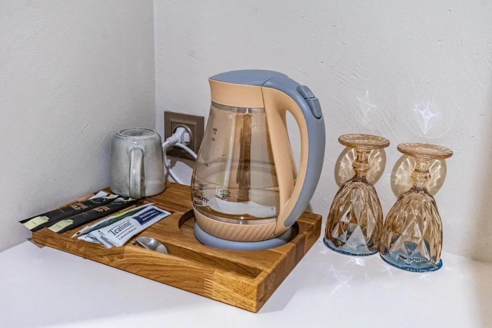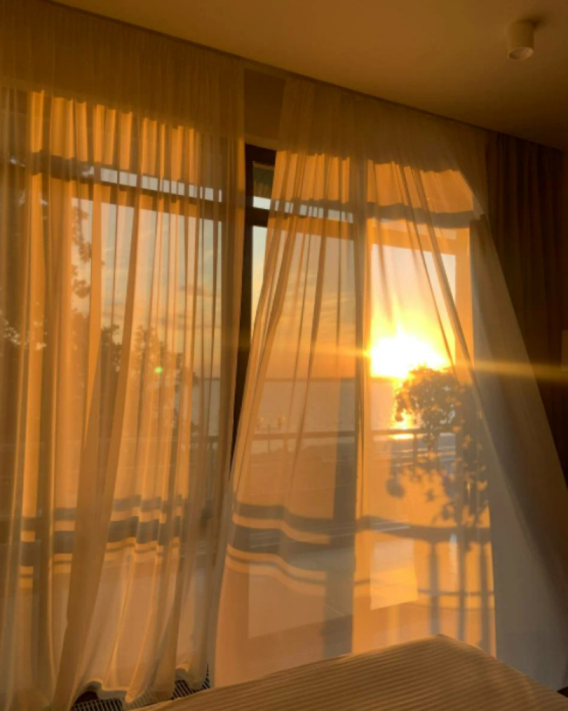 Уютный номер, оборудованный всем необходимым для комфортного проживания. В номере: двуспальная кровать, прикроватные тумбочки, шкаф, телевизор, рабочий стол, стул, кондиционер, ванная комната с ванной и санузлом. Из номера открывается вид на море.
