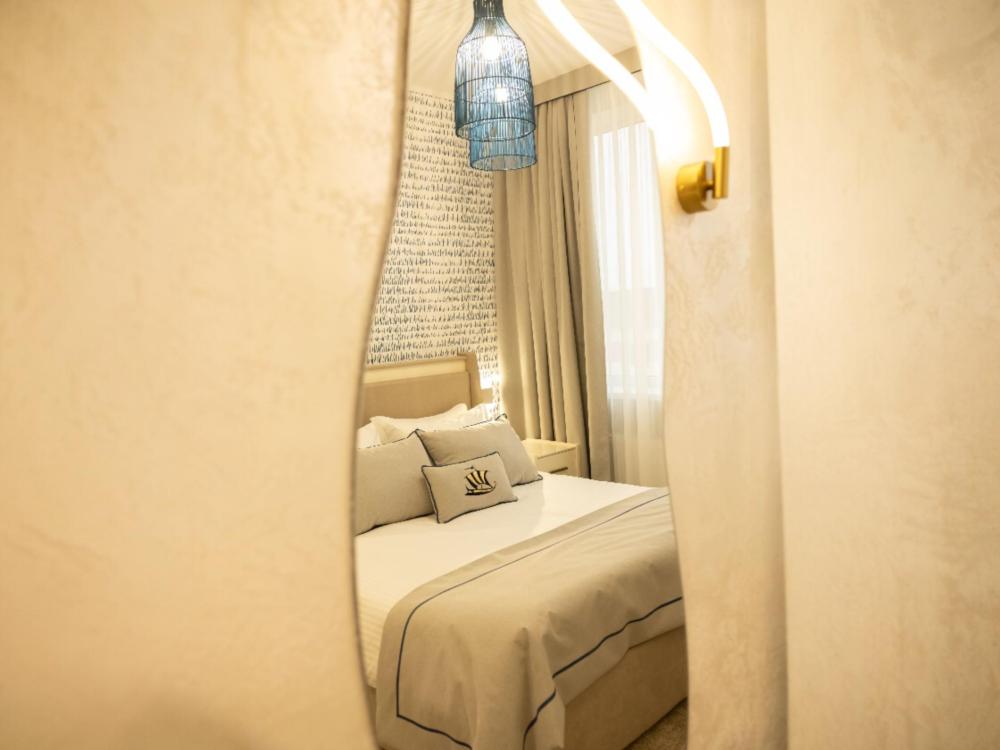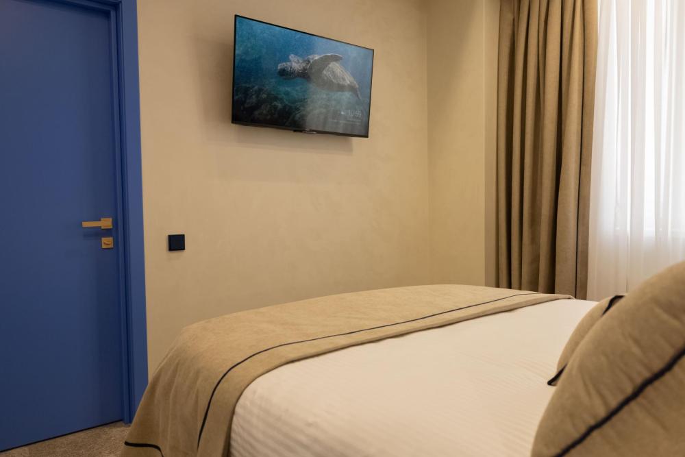 Двухместный номер Стандарт 17м² сочетает в себе современный минимализм и уютную атмосферу. Интерьер выполнен в теплых бежевых тонах, которые создают ощущение комфорта и гармонии. Каждый номер оборудован просторной ванной комнатой с современной сантехникой, тропическим душем и полами с подогревом. Окна номеров данной категории выходят во двор, что обеспечивает спокойную атмосферу и уединение.