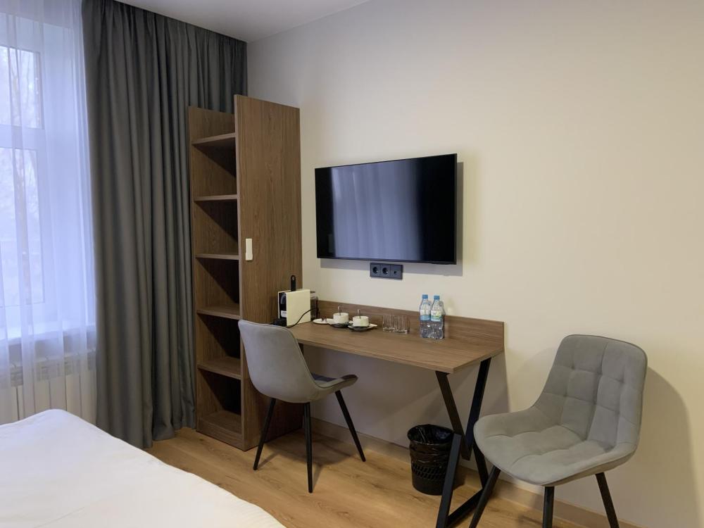 Кровать с ортопедическим матрасом, сейф, телефон, телевизор, холодильник, чайник, кондиционер, фен, гигиенический душ, гигиенические средства, полотенца, тапочки.