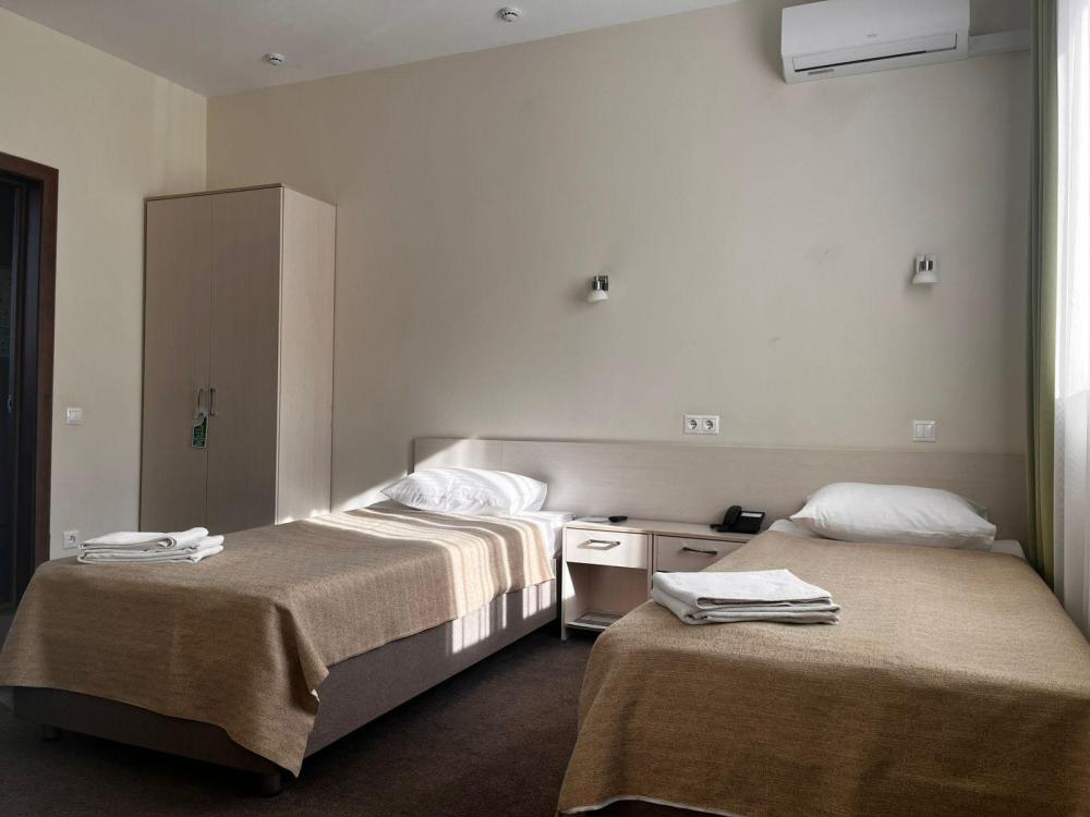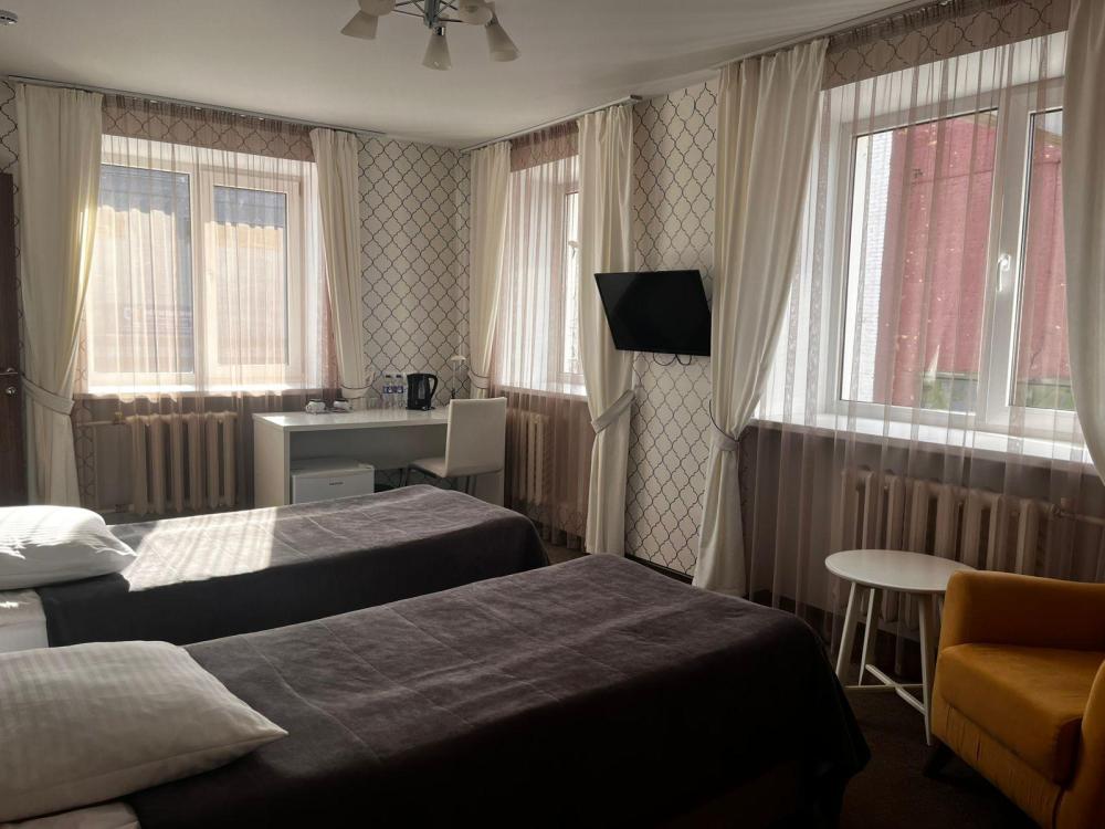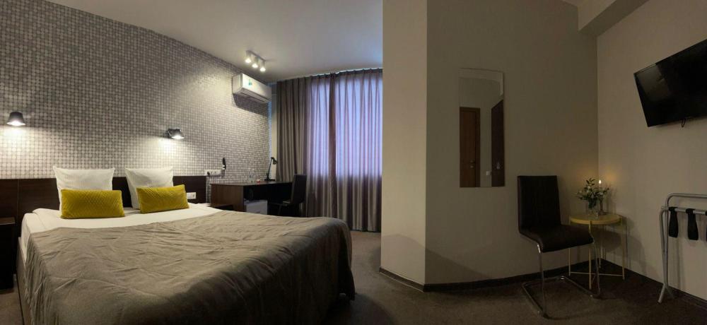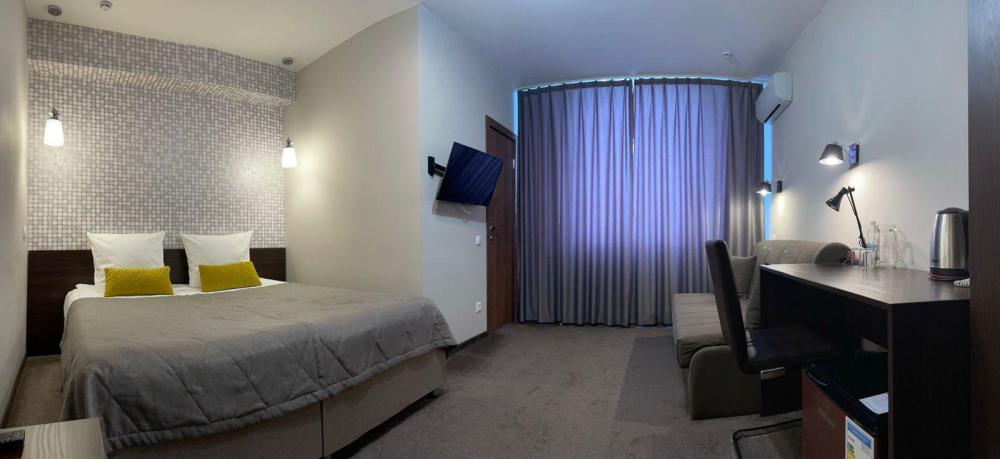 Комфортабельный номер, площадью 25 кв.м., для одного или двух человек Здесь есть все самое необходимое для Вашего комфорта: - удобные две 1,5-спальные кровати или одна большая 2х-спальная кровать с ортопедическим матрасом; - яркий диван или стильные кресла и журнальный столик; - прикроватные вместительные тумбочки; - Полноценное рабочее место с письменным столом; - Шкаф для вещей; - улучшенный дизайн и текстиль в номере; - кондиционер; - большой LCD-телевизор для просмотра любимых передач и фильмов; - электрический чайник; - сейф; - санузел с душевой кабиной; - фен; - полотенца, халат, тапочки, ложка для обуви и банные принадлежности; - чайная пара и бутилированная вода; - мини-бар (взимается дополнительная плата) - бесплатный Wi-Fi на территории всей гостиницы; - возможность связаться с администратором 24/7, не выходя из номера.
