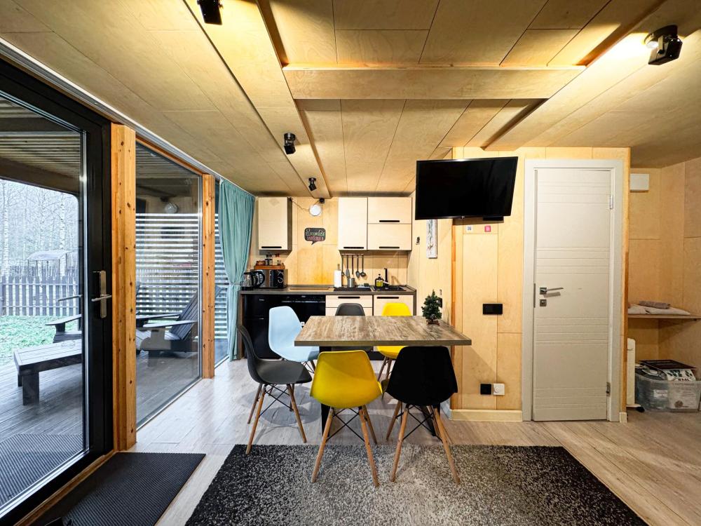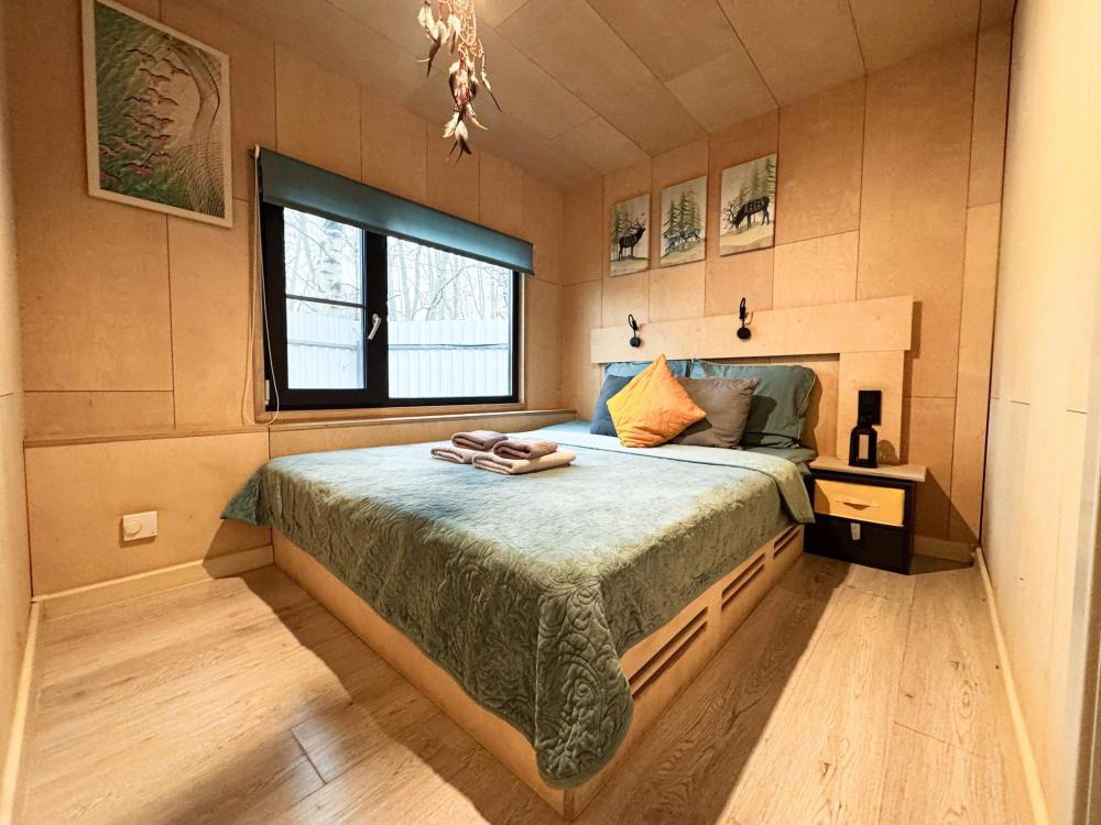 Smart-коттедж "O-frame Large" находится в хвойном лесу и является самым большим по размеру в линейке O-Frame, класса "Комфорт+", оснащенным системой «Умный дом». Панорамное остекление фасада. Своя терраса со столом и креслами. Две отдельные спальни с двух-спальными кроватями и раскладной диван на двух человек в гостиной позволят комфортно разместиться 6 гостям. Коттедж оборудован всем необходимым для отдыха: телевизор со SmartTV, двухкомфорочная керамическая варочная панель, микроволновая печь, капельная кофеварка, чайник, посудомоечная машина, набор посуды на шесть человек. В санузле имеются унитаз, душевая кабина, стиральная машина. На территории коттеджа есть баня-бочка (за отдельную оплату), мангальная зона со всеми принадлежностями (решетка, шампуры, кочерга, веер) и качели. На локации есть безопасный детский городок с горкой и качелями.