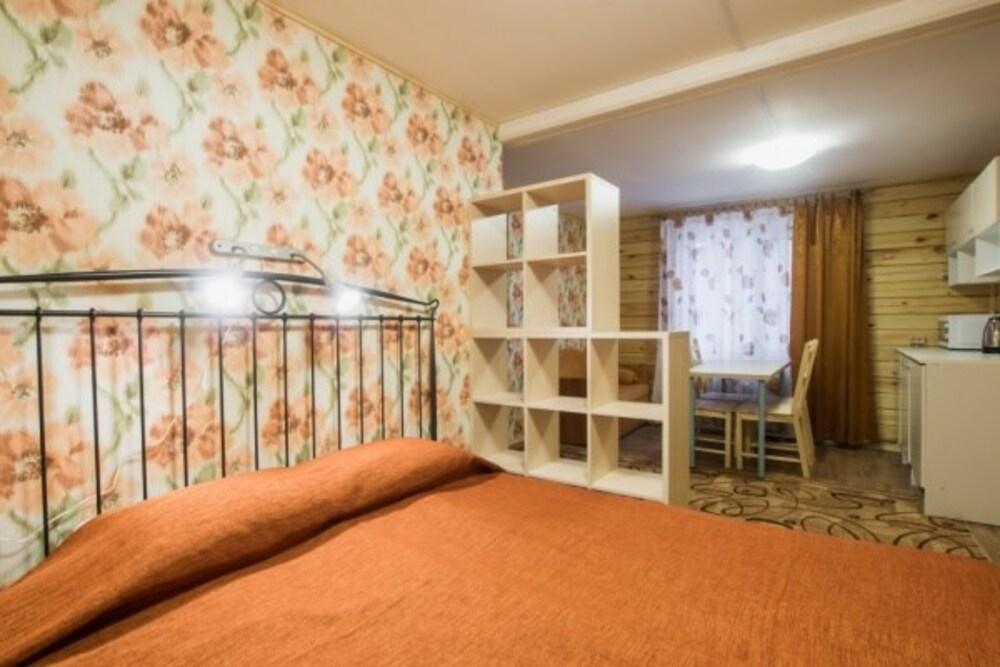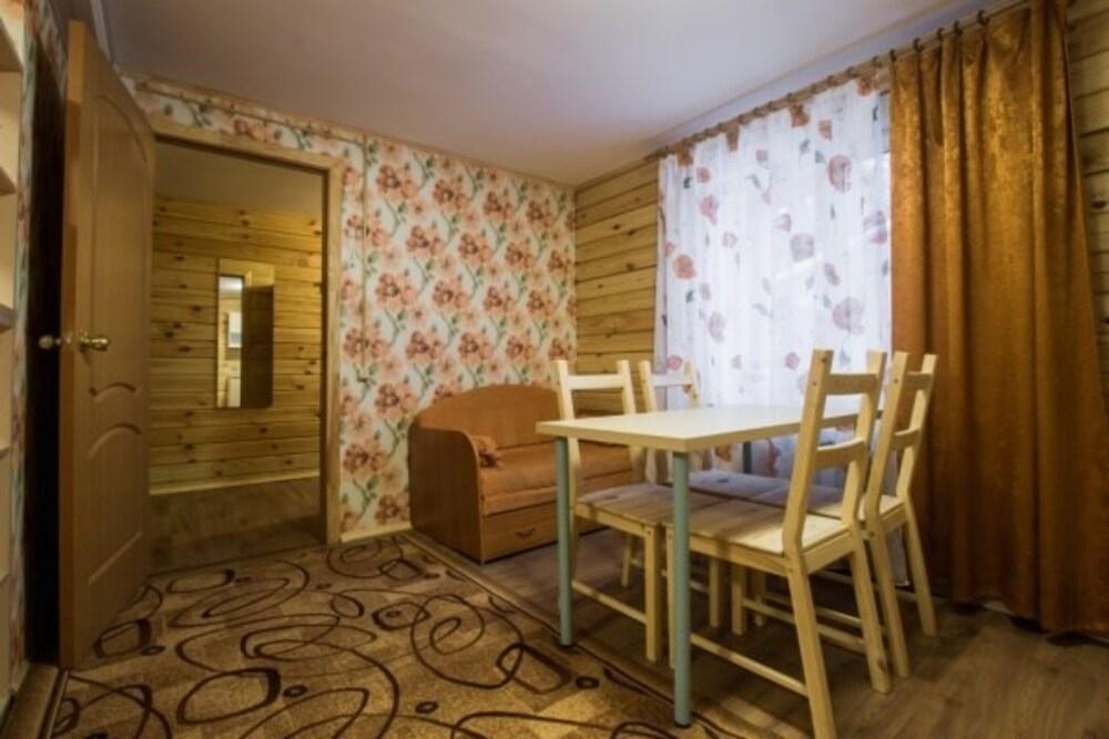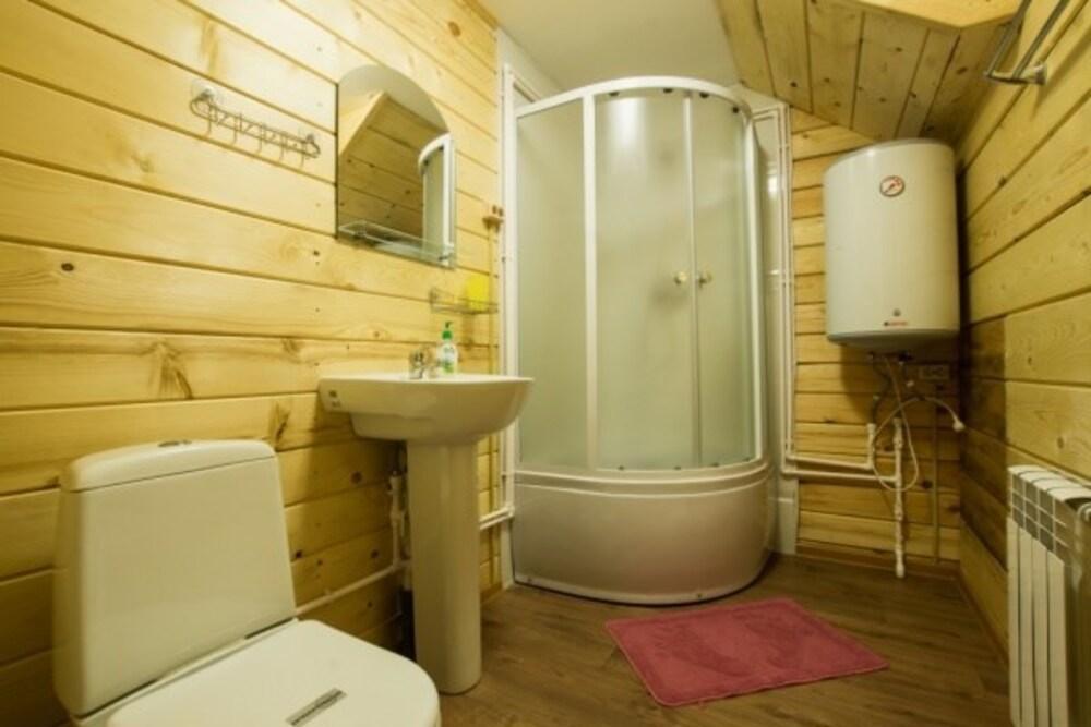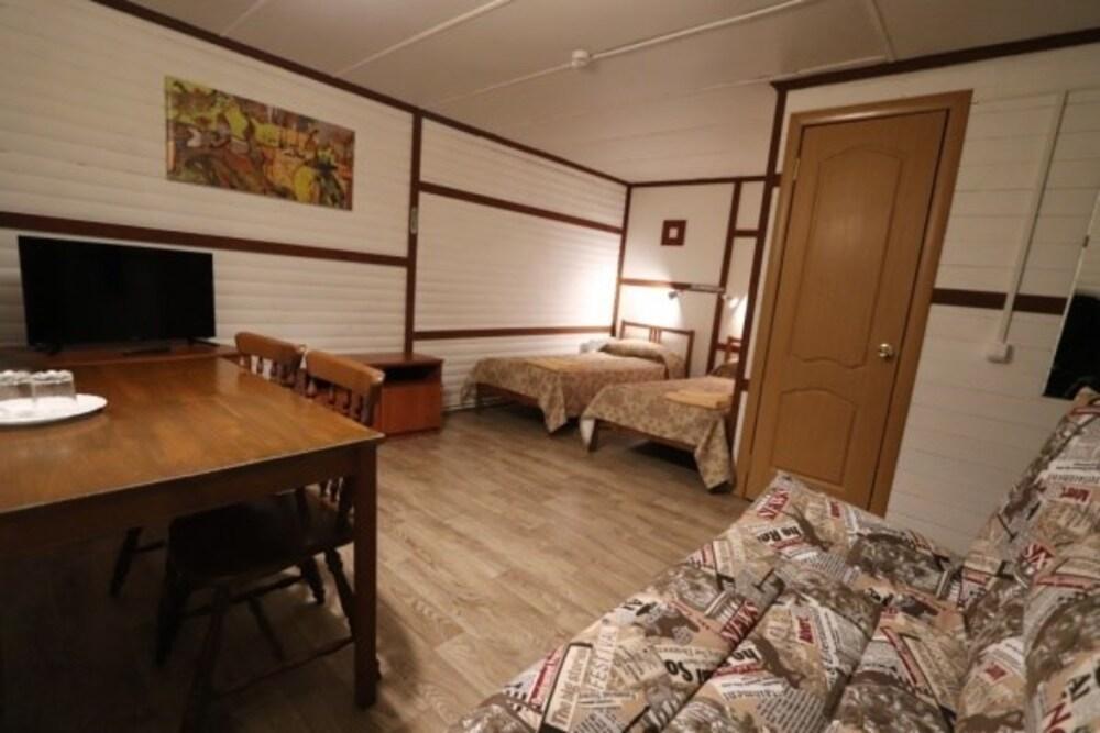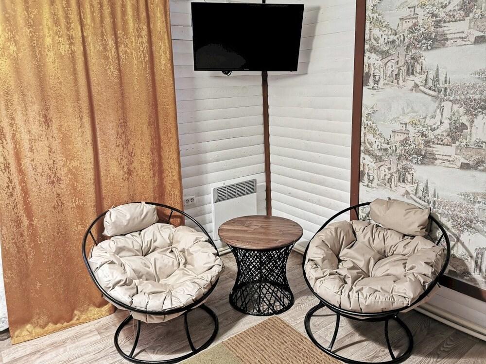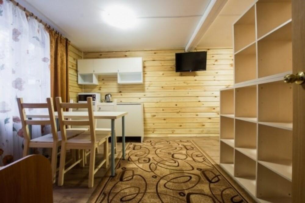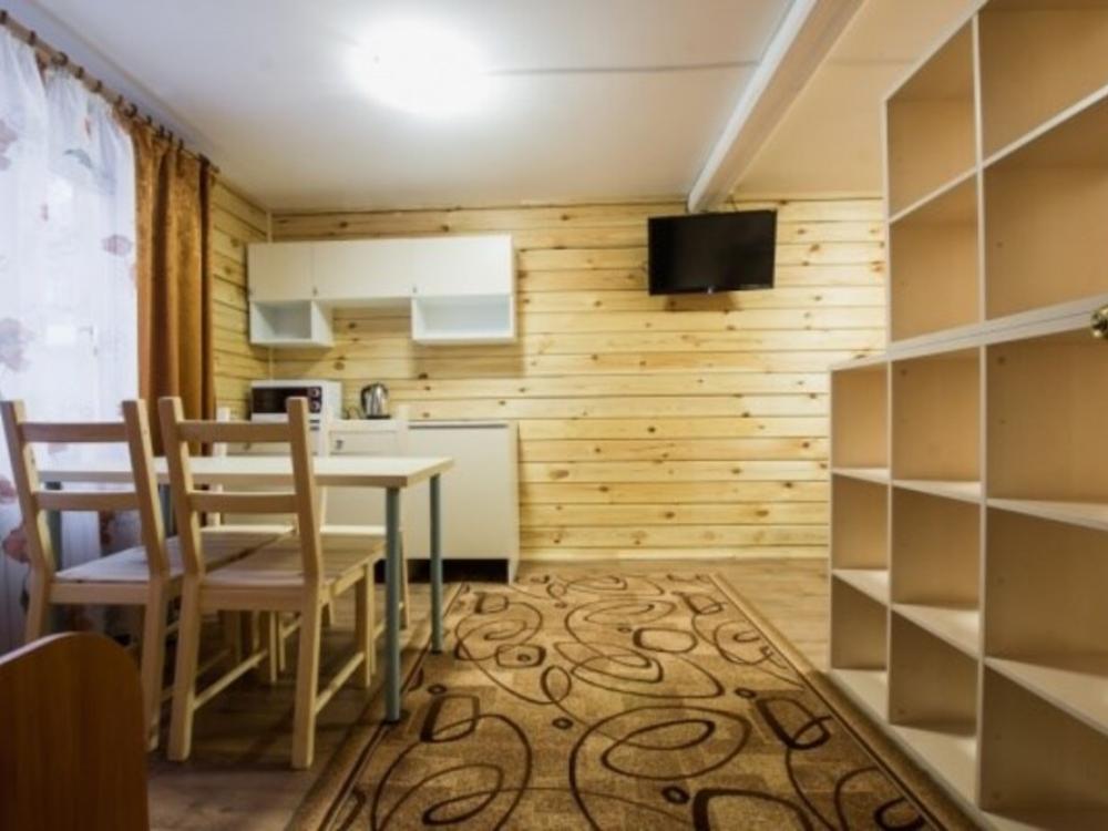 Коттедж стандарт. Отдельно стоящие гостевые домики с летней кухней (отапливается), в номере душ, туалет, ТВ, холодильник, фен. На кухне чайник и микроволновка.
