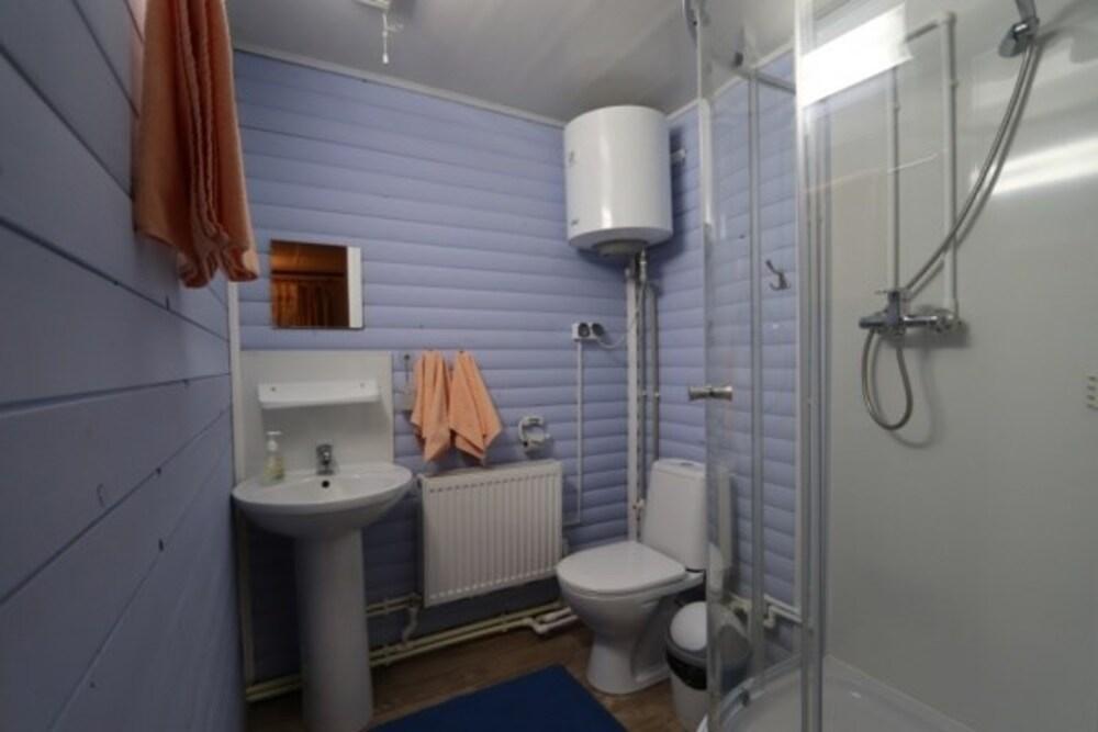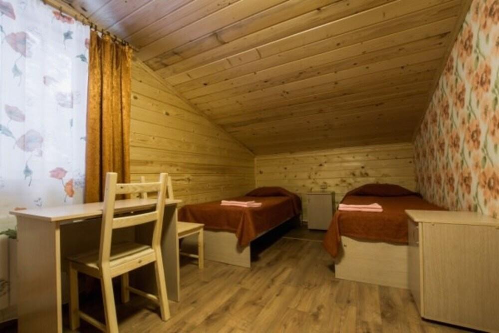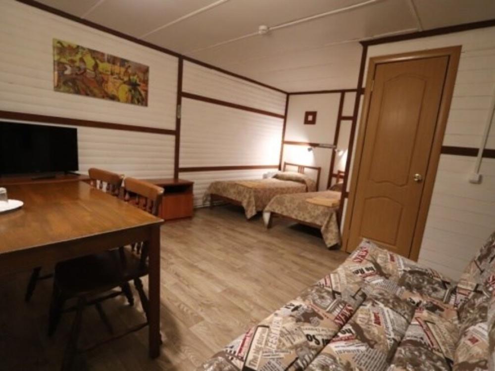 3-комнатный коттедж улучшенный. Отдельно стоящие гостевые коттеджи, двухэтажные, трехкомнатные. В коттедже на первом этаже - комната студия с мини кухней, ТВ, холодильником, чайником, микроволновкой, санузел с душем. На втором этаже 2 спальни.