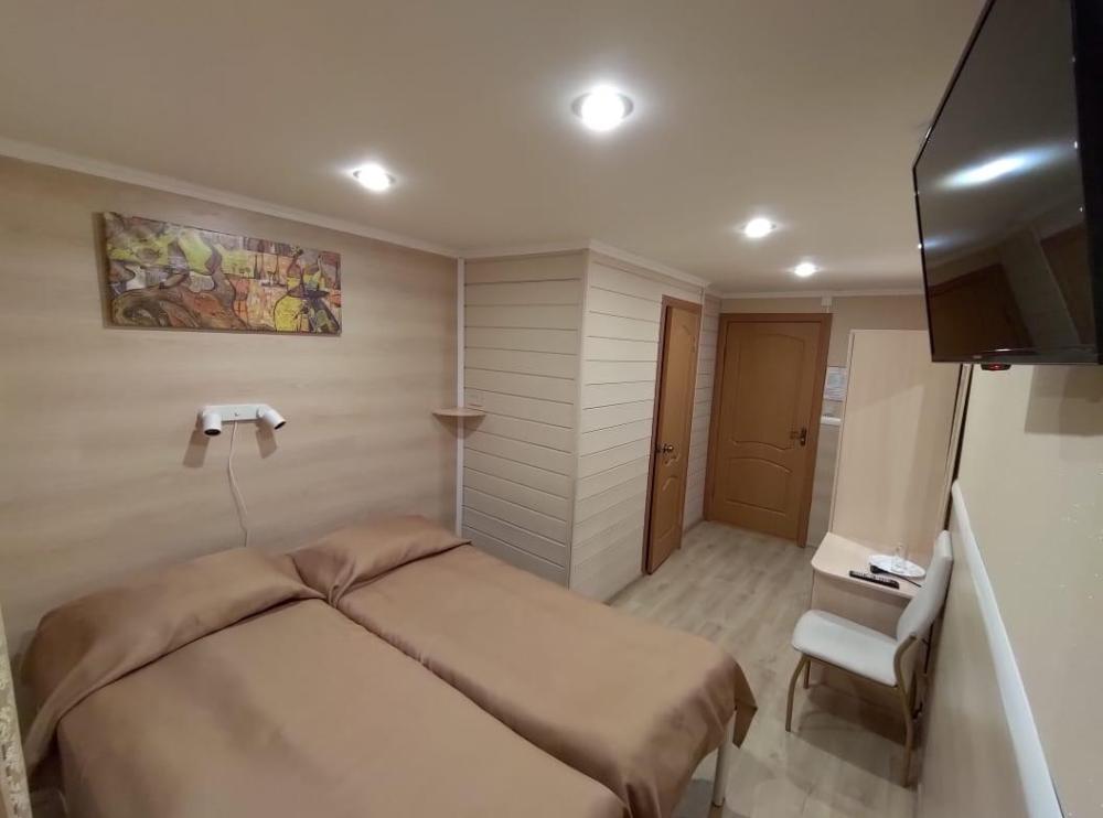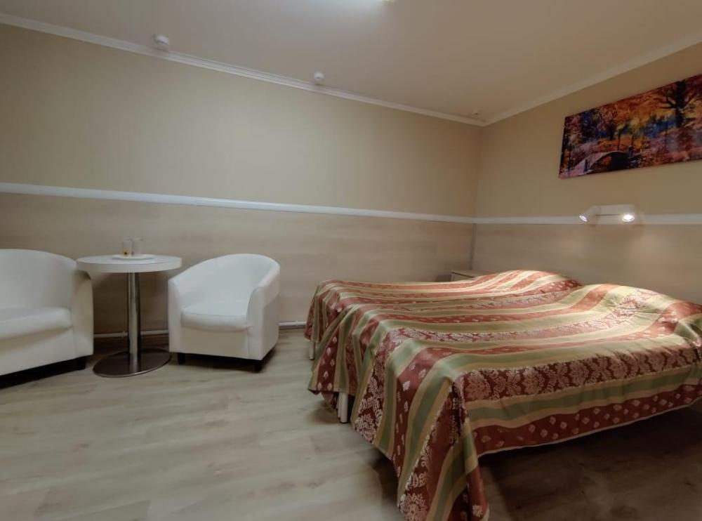 2-местный номер стандарт. В номере имеется двуспальная или две односпальные кровати, шкаф, стол, зеркало, собственный санузел.