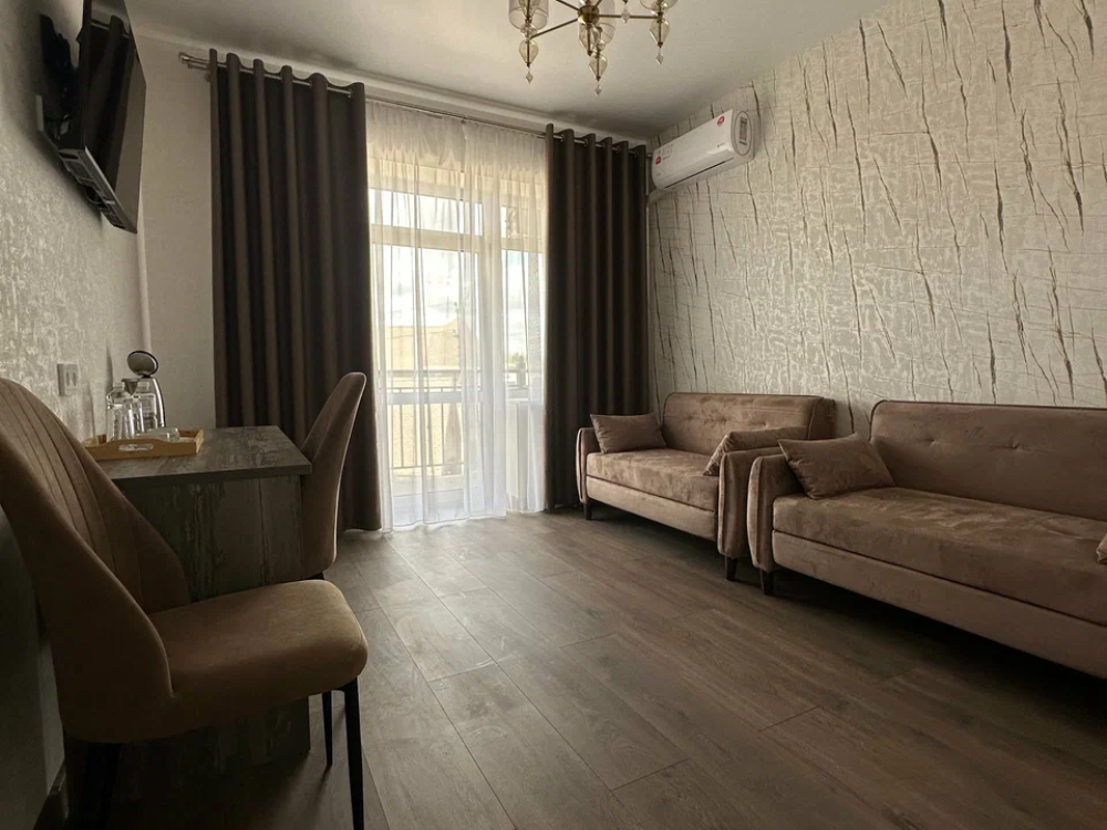 Уютный номер, оборудованный всем необходимым для комфортного проживания. В номере: двуспальная и односпальная кровати, кондиционер, телевизор, собственная ванная комната.