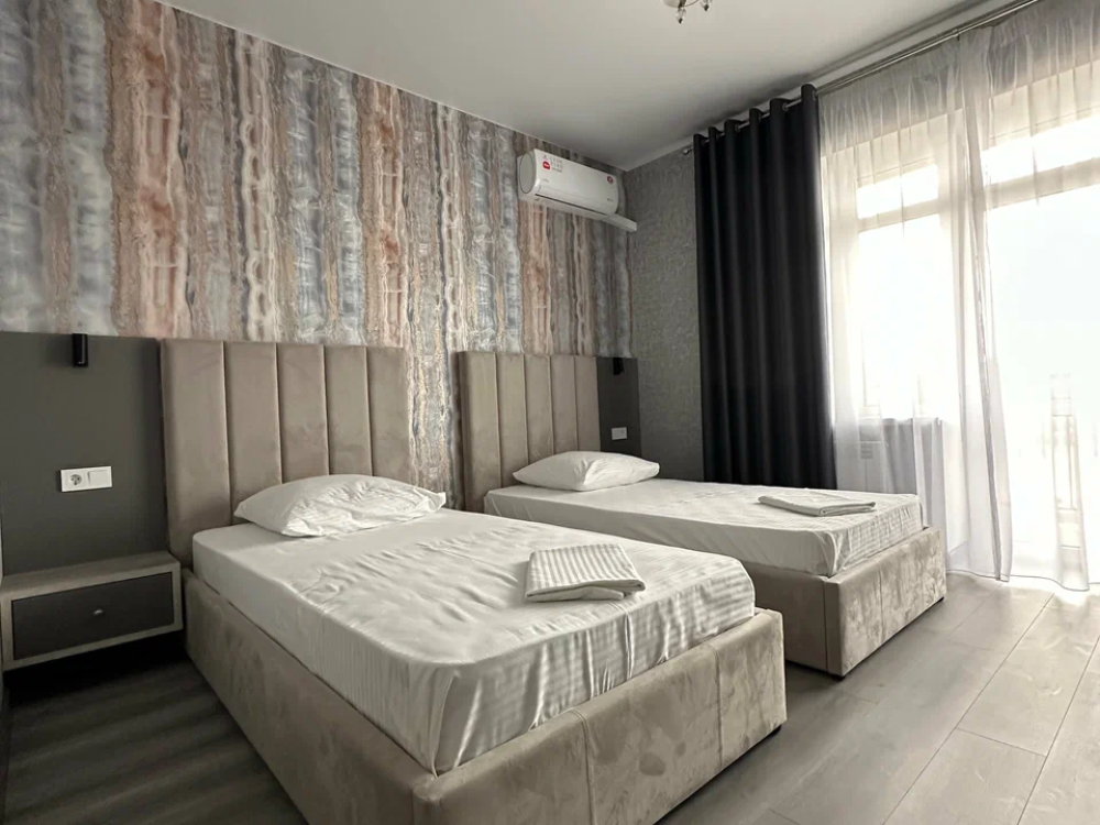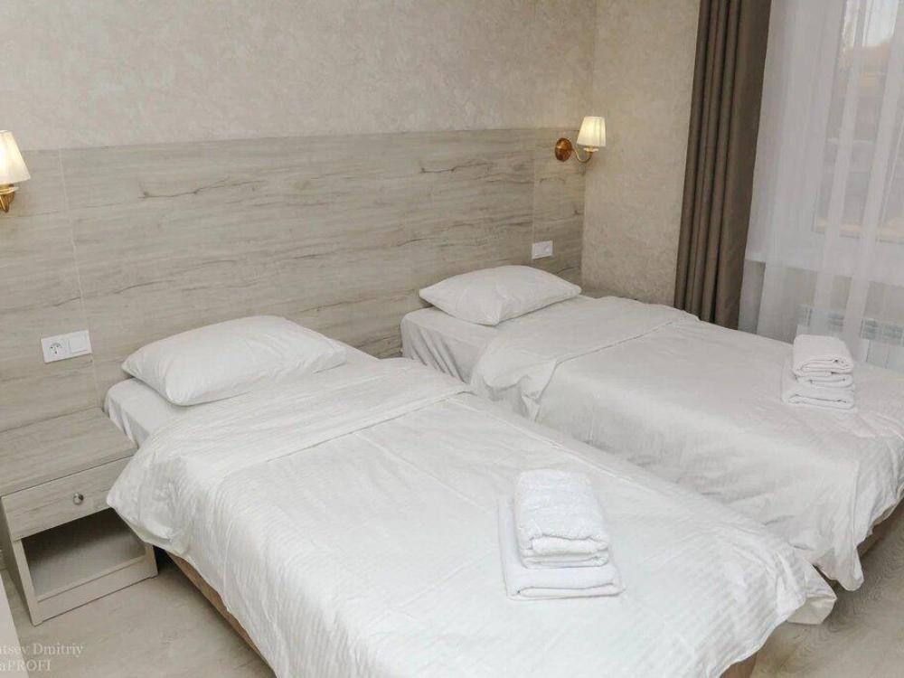 Уютный номер, оборудованный всем необходимым для комфортного проживания. В номере: две односпальные кровати, кондиционер, телевизор, собственная ванная комната.