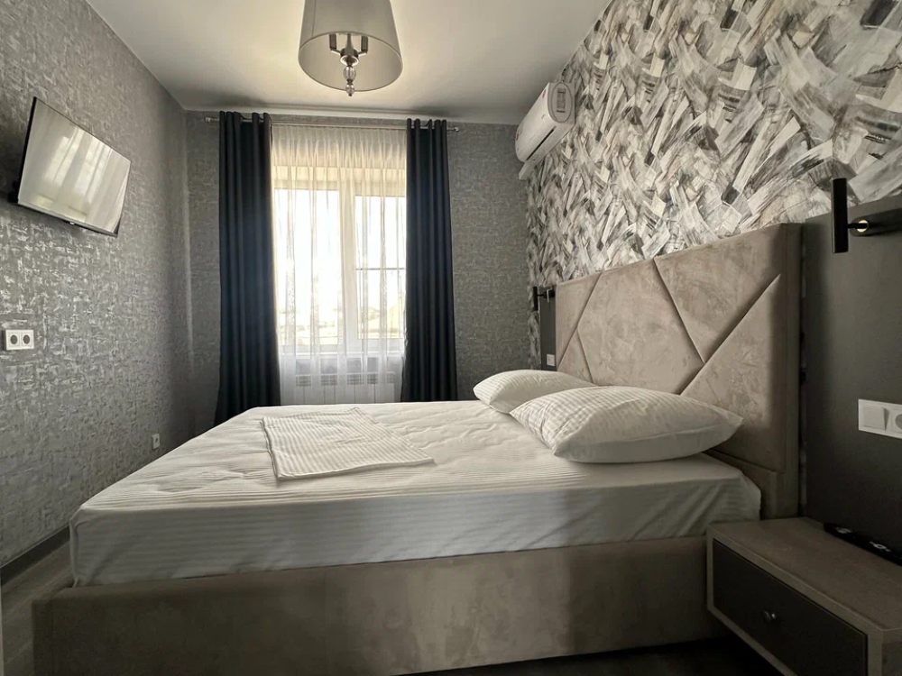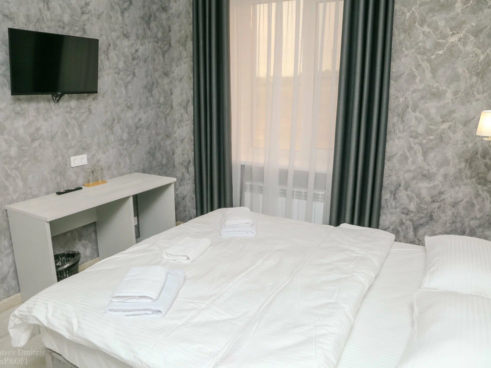 Уютный номер, оборудованный всем необходимым для комфортного проживания. В номере: двуспальная кровать, кондиционер, телевизор, собственная ванная комната.